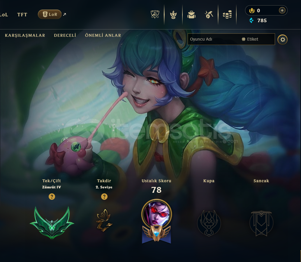 Hesap 2021 kurulum eski hesaptır ban yemez . Hesap sizin mailinize kaydedilecek . Hesap 85 Level ve Zümrüt 4 . Dereceli hazır . Kaliteli ve bol kostümler mevcut . Bol şampiyon mevcut . 7/24 sorunsuz teslimat mevcut . Alana hayırlı olsun .