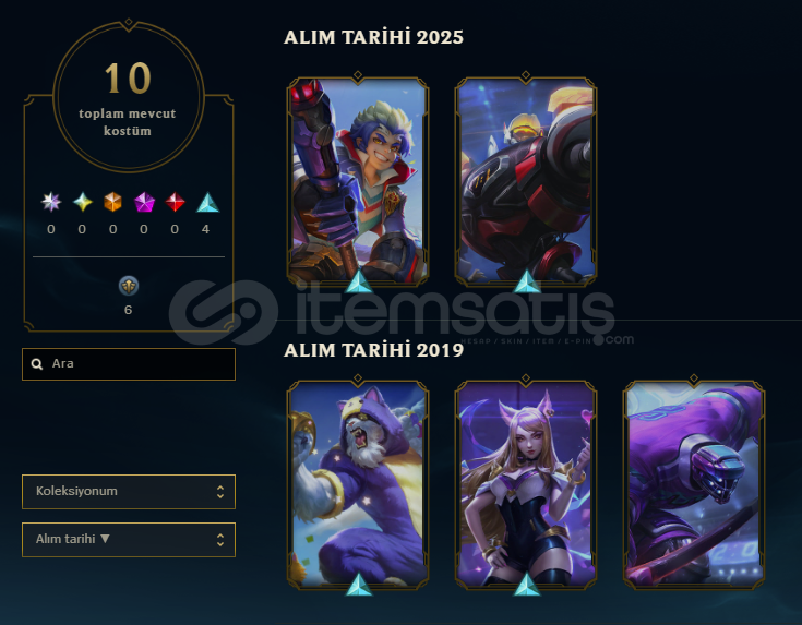 10 Kostümlü 89 Level TR HesapHesabın op.gg linki: https://op.gg/tr/lol/summoners/TR/CANSSSS-TR1