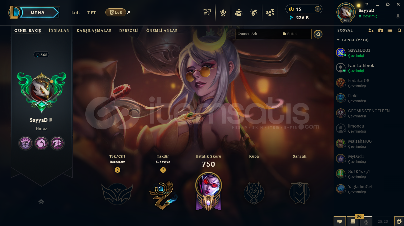 Uzun süredir oynamadığım için şu an bir rank bulunmamaktadır. Hesap ile ilgili bütün bilgiler resimlerde mevcuttur.