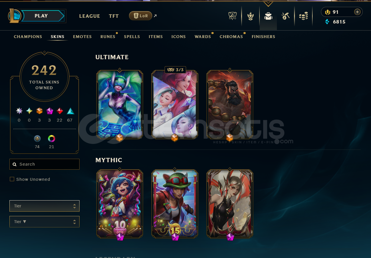 💎 Hesap Özellikleri:🏆 Sunucu: TR🧍‍♂️ Tüm Şampiyonlar Açık (6 adet şampiyon açık değil mavi öz ile 2 yada 3 adetini açabilirsiniz)👗 242 Kostüm (birçok özel ve nadir kostüm dahil)🪞 245 Simge / İkon🕰️ 10 Yıllık Hesap – köklü, güvenilir ve aktif geçmiş✉️ E-posta Değiştirilebili...