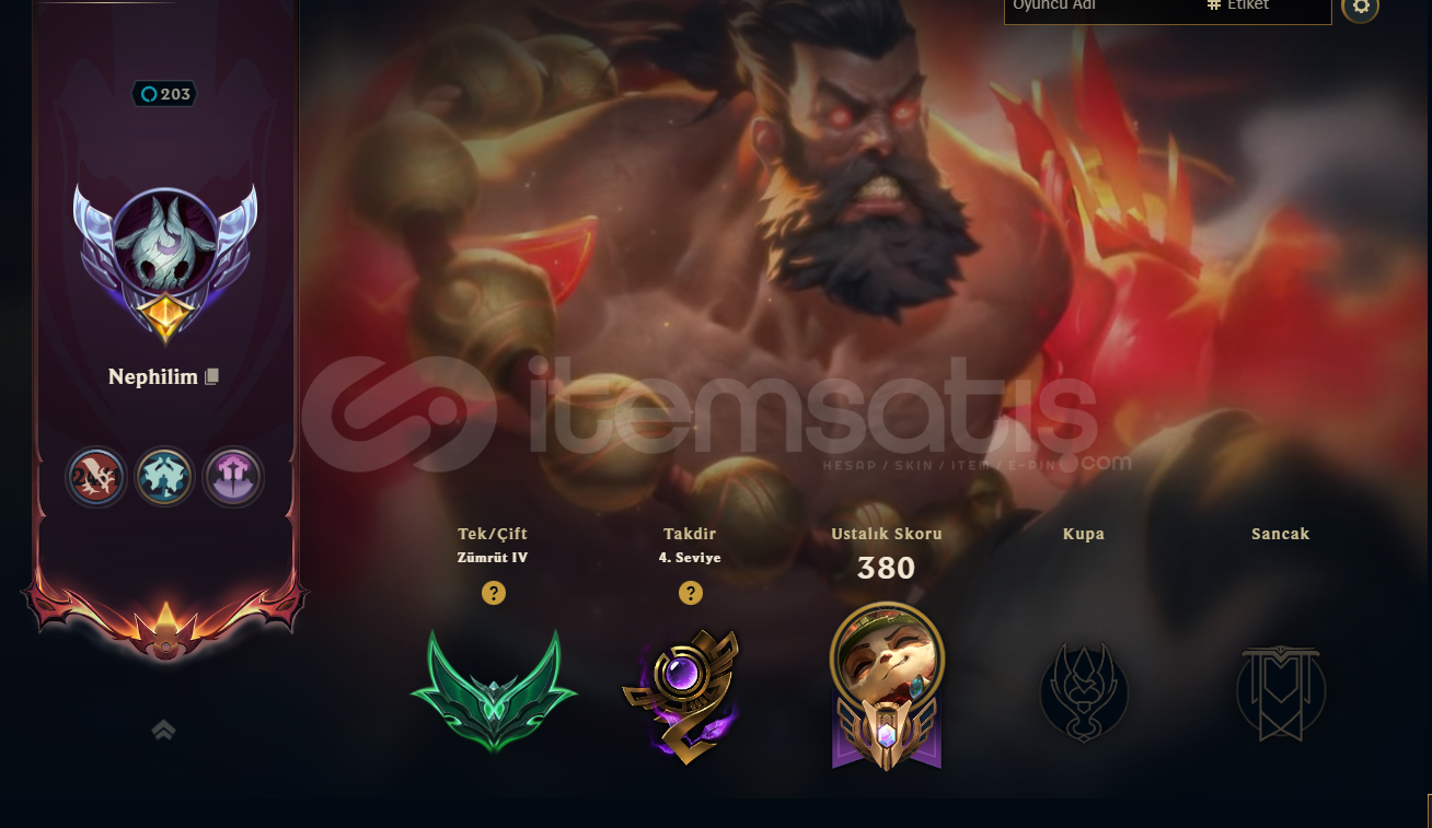 MAİL DEĞİŞEN%100 EL YAPIMI TR SERVERİZÜMRÜT ELO203LVL60+SKİNEBEDİ KOSTUM MEVCUTİNDİRİM OLABİLİR