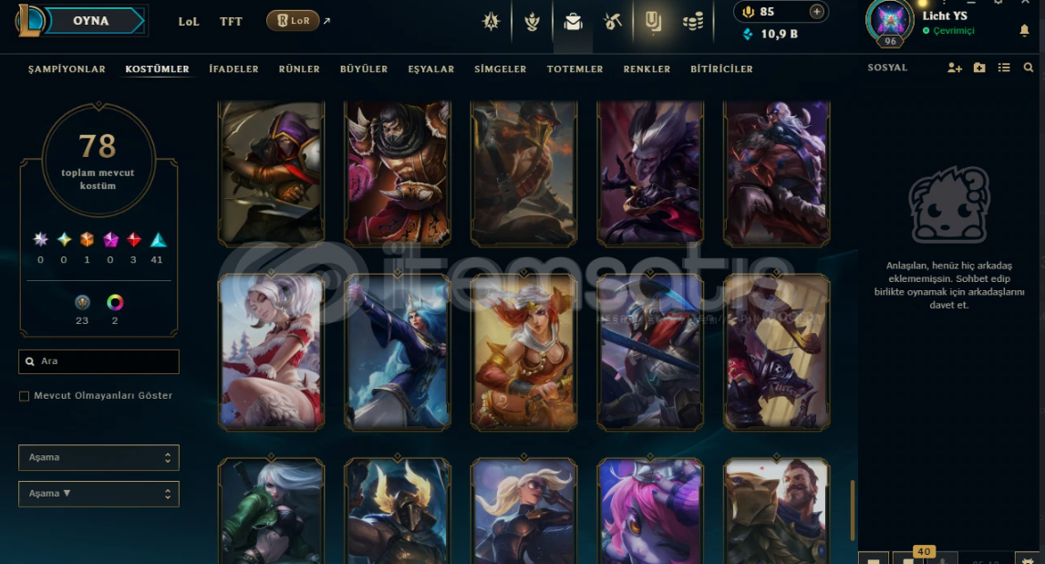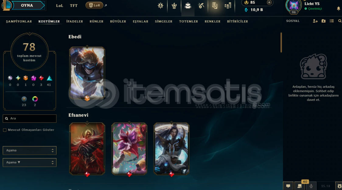 100 SEVİYE 80 KOSTÜMLÜK MAİNLEMELİK HESAP UCUZA