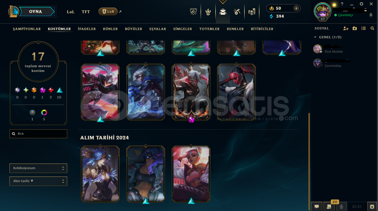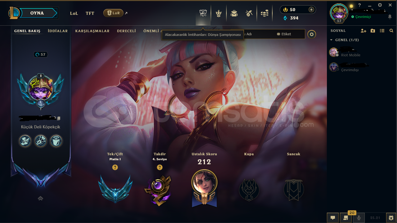104 ŞAMPİYON 17 KOSTÜM 135 İHTİŞAMLI ÖZ PLAT 1 hesabı satıyorum hesap yaklaşık 6-7 aydır bende hiçbir sıkıntısı yok.Telefon numarası vs. bağlı değil ve mail değişimi yapılacak alana şimdiden hayırlı olsun.4.seviye takdiri vardır.