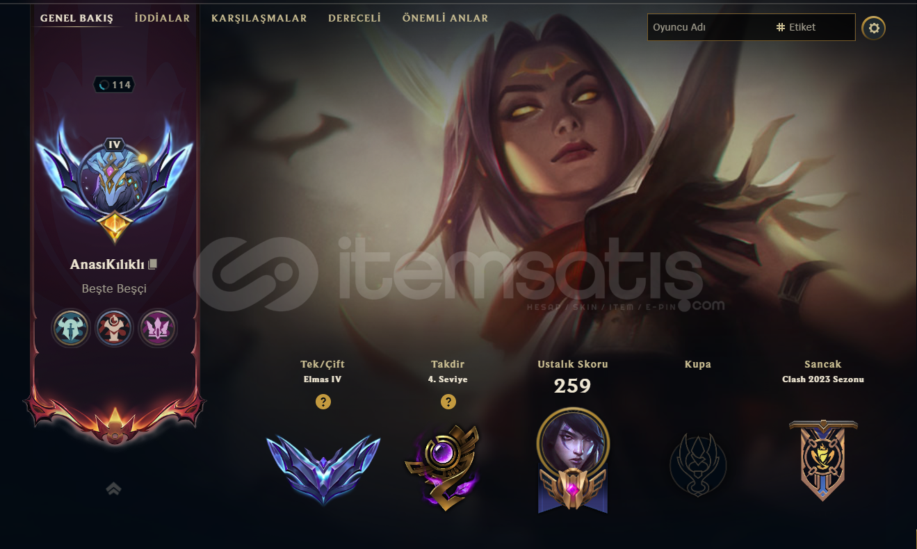 Hesap bana ait benim tarafımdan oynanılmaktadır güncel olarak elmas 4te rankını bırakıp arena oynamaktayım