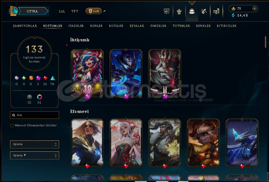 HESABIN İLK SAHİBİ DEĞİLİM 2 YILDIR BENDE NEREDEYSE TÜM ADCLERDE SKİN VAR 50 TANE RENK 2 JARVAN İHRİŞAMLI KOSTÜM İRELİA MAİN HESAP SADECE 5 HERO AÇIK DEĞİLDİR VALORANTINDA DA YAĞMACI VANDAL TÜM ÖÇZELİİKLERİ RENKLERİ AÇIK ŞEKİLDE GELMEKTEDİR FİYAT SON