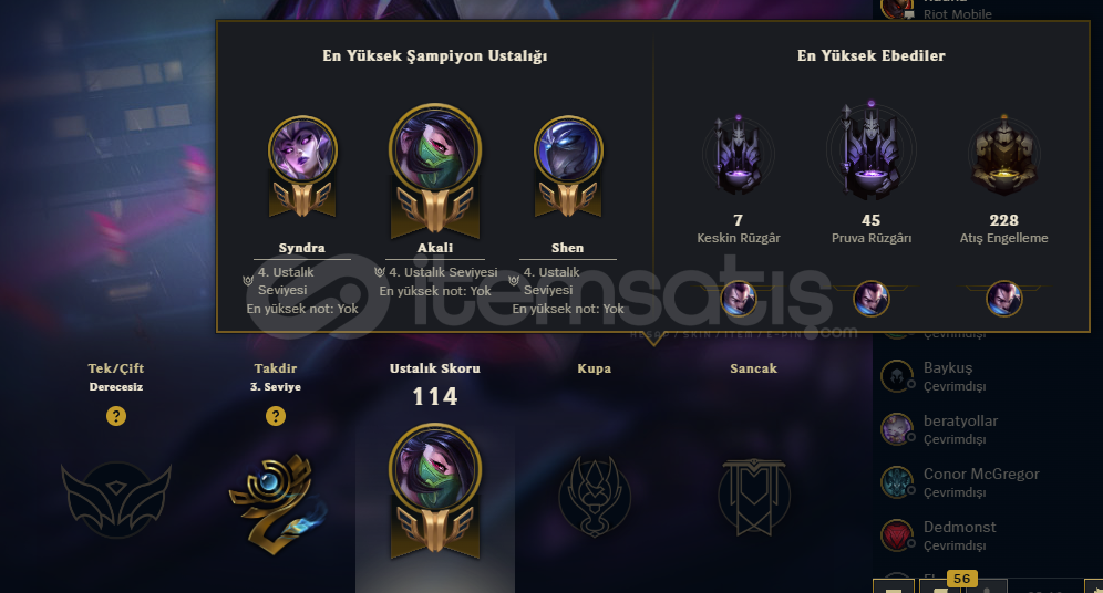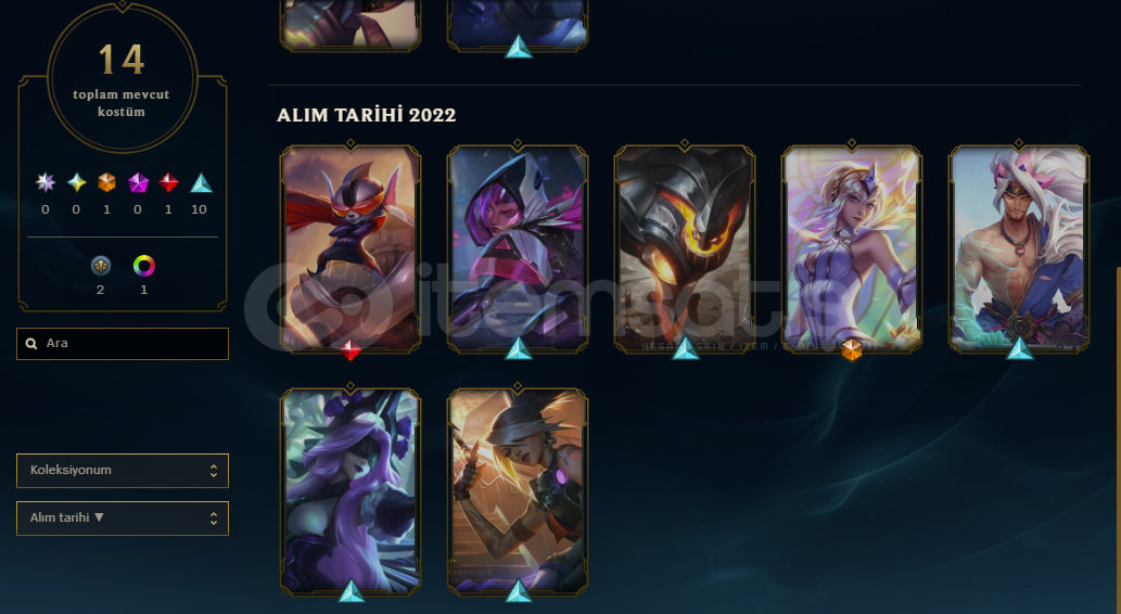 Hesapla ilgili çoğu şeyi ilan fotoğraflarından bulabilirsiniz, sorunuz varsa bize yazabilirsiniz.Hesabın içindeki kostümlerin bazıları:Elemantalist LuxSüper Galaxi RumbleRuh Çiçeği YasuoKOD ADI: ViTrue Damage Akali...