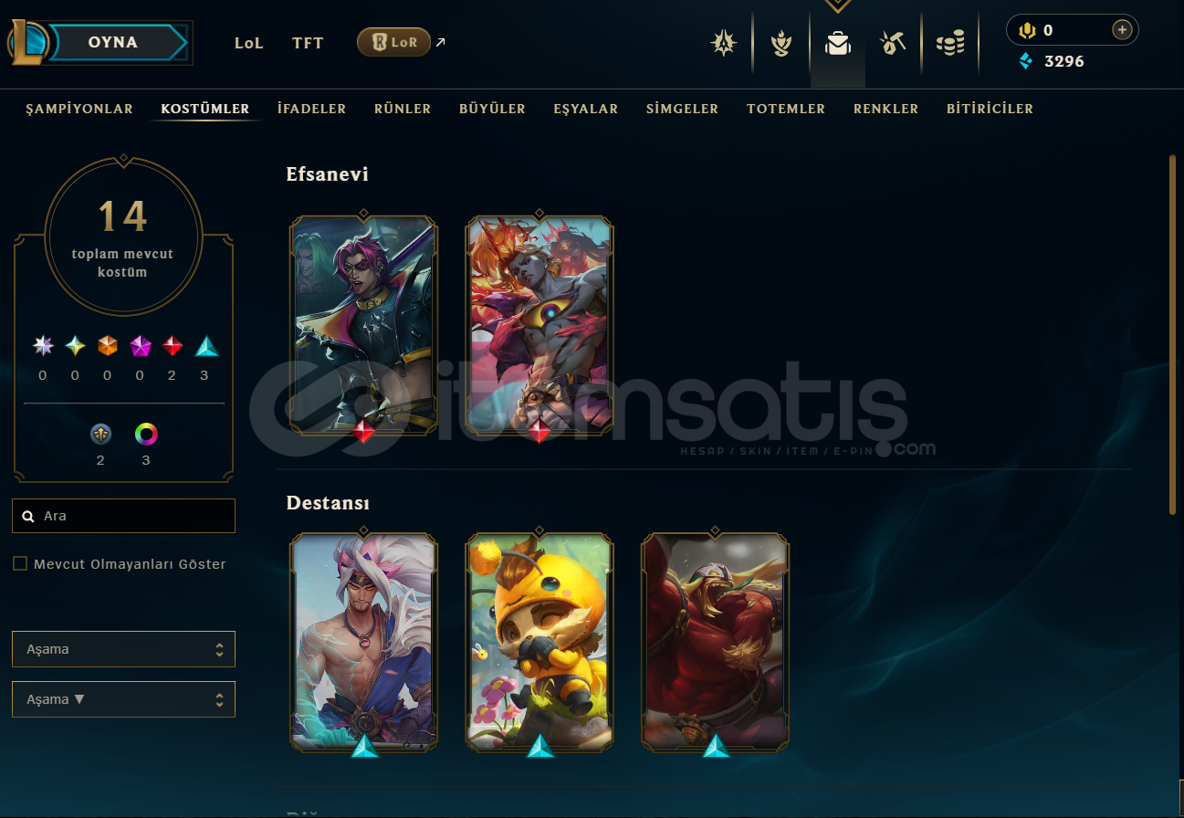 14 SKİNLİ ACİL SATILIIK LOL HESABI
