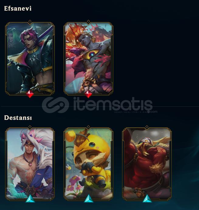 hesapta 2 efsanevi olmak üzere 14 skin vardır mail degişecektir