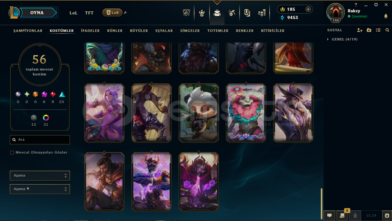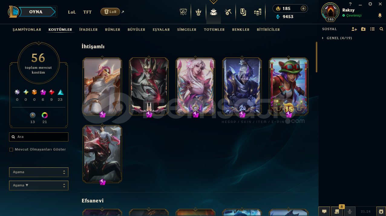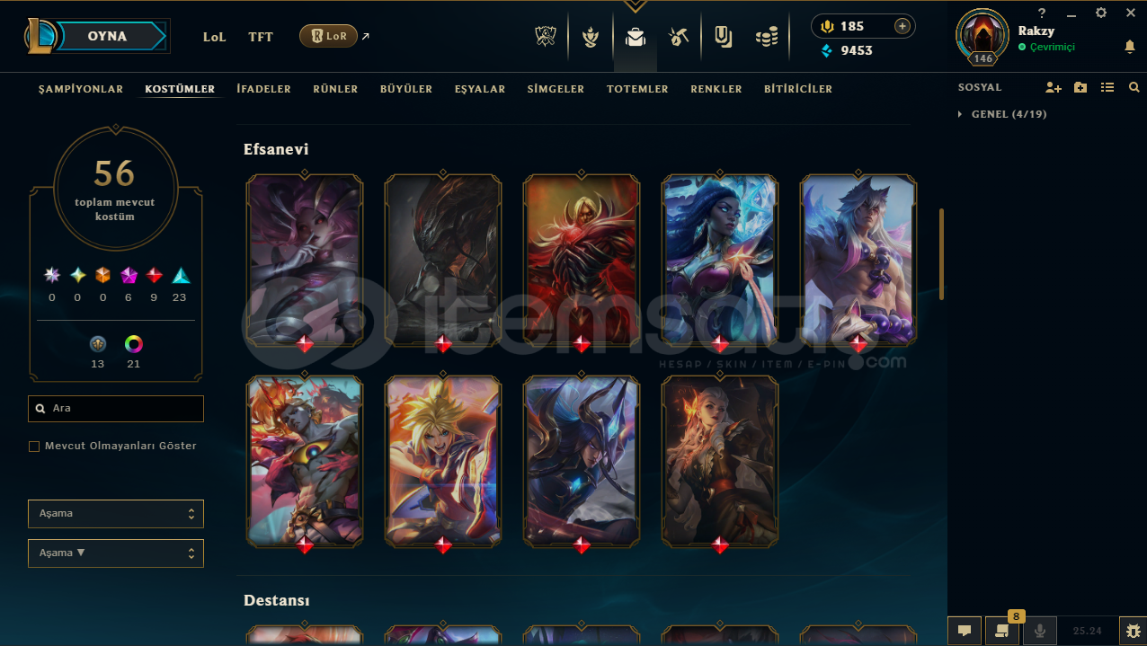 hesap tr hesabıdırhesabın güncel rankı flex gold 4 tek/çift gümüş 4146 seviyedir148 şampiyon vardır124 tanede ihtişamlı özü vardır !!!6 tane ihtişamlı9 tane Efsanevi23 tane destansıkonstüm var10k mavi özü var
