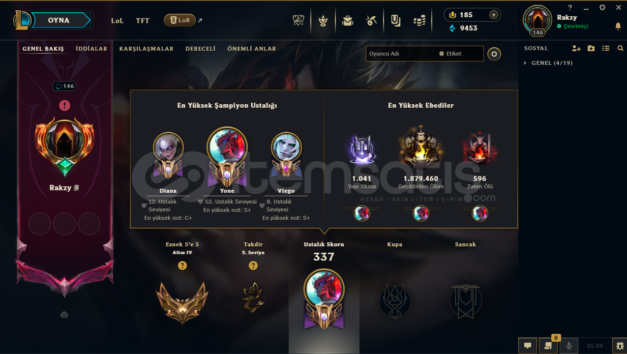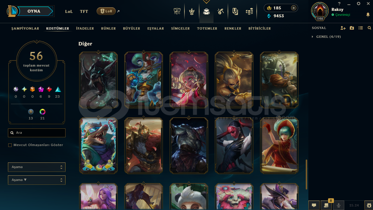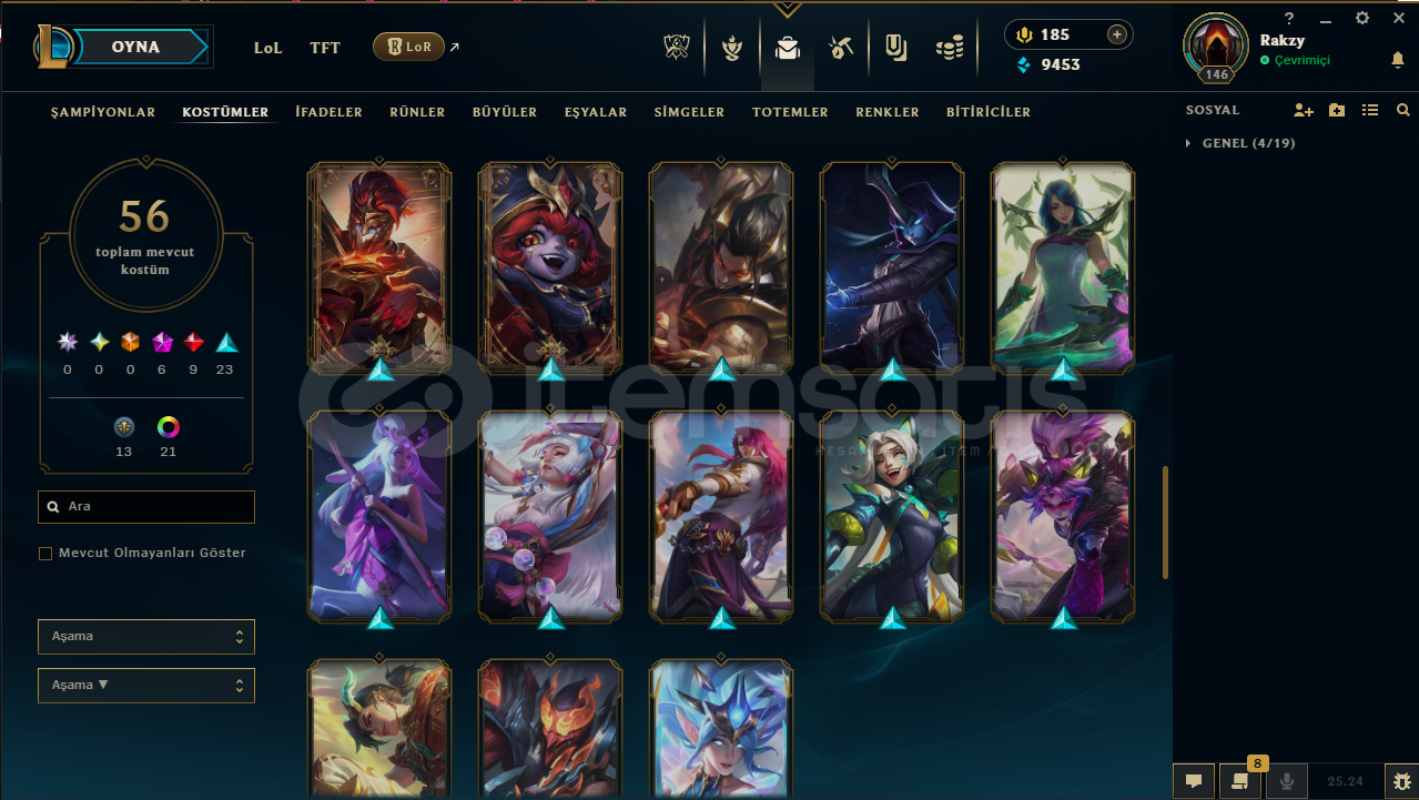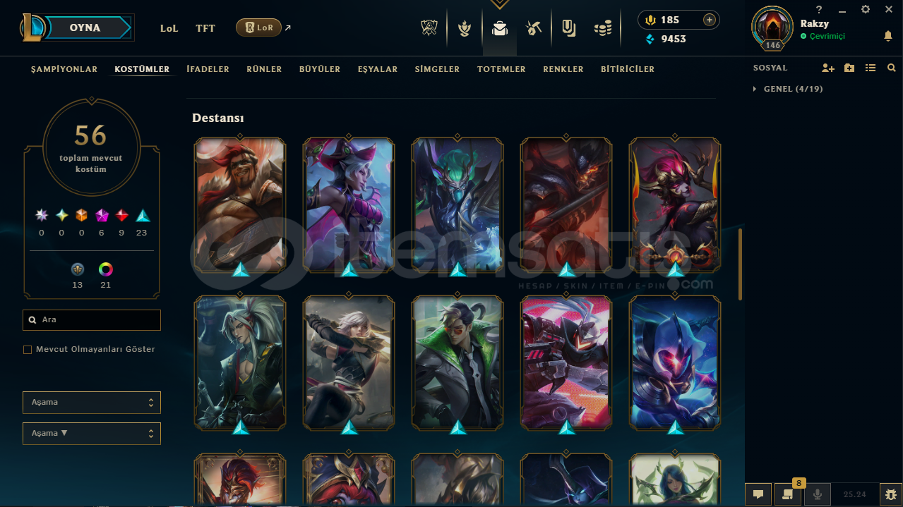 hesap tr hesabıdırhesabın güncel rankı flex gold 4 tek/çift gümüş 4146 seviyedir148 şampiyon vardır124 tanede ihtişamlı özü vardır !!!6 tane ihtişamlı9 tane Efsanevi23 tane destansıkonstüm var10k mavi özü var