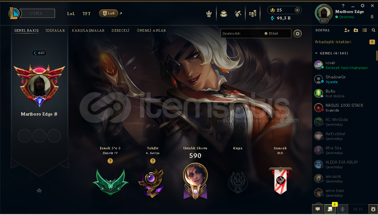 CİDDİ ALICILAR İÇİN PAZARLIK YAPILIRElo: Zümrü 4(esnek - Gümüş 2 (tek cift) gelen lp 25 35 arasıdırKostümler: 156 adet kostüm mevcutHerolar: Tüm herolar açık durumdaBan Durumu: Hesap daha önce ban yemedi, temiz geçmişe sahipEkstra: Hesapta ekstra herhangi bir sorun yok, rahatça kullanabilirsiniz.İlgilenenler mesaj atabilir. Fiyat konusunda pazarlık yapılabilir alıc...