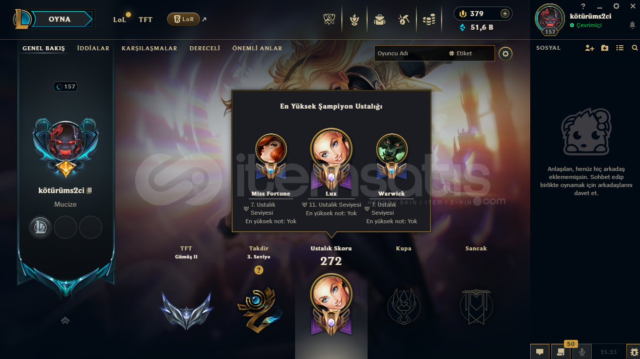 uygun bütçeli lol hesapları için profilime göz atabilirsiniz