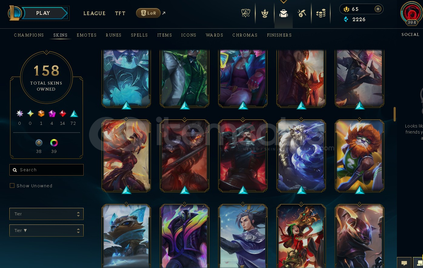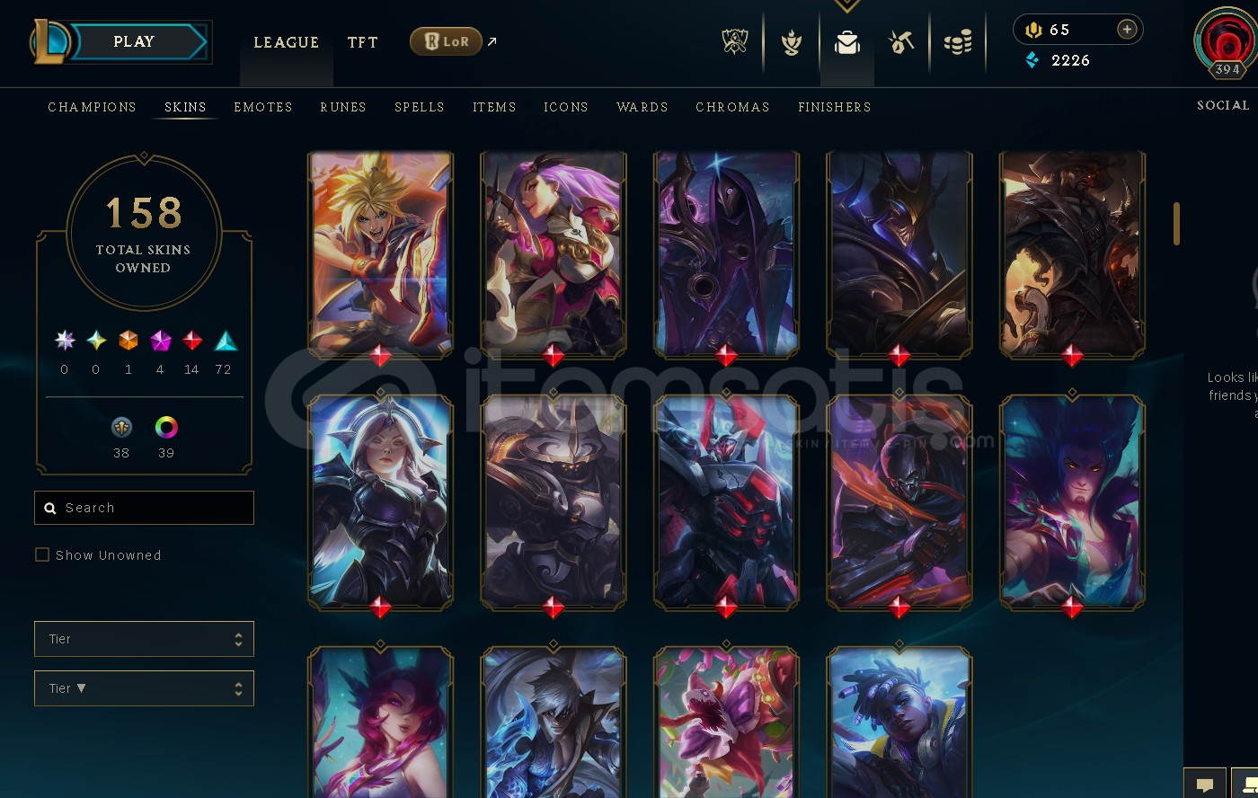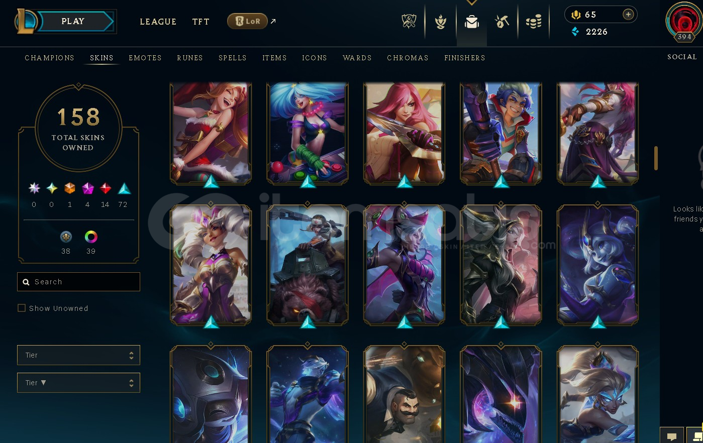 158 skin mevcut ve tüm şampiyonlar mevcut.