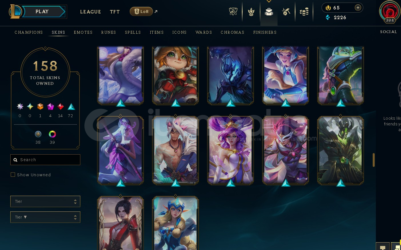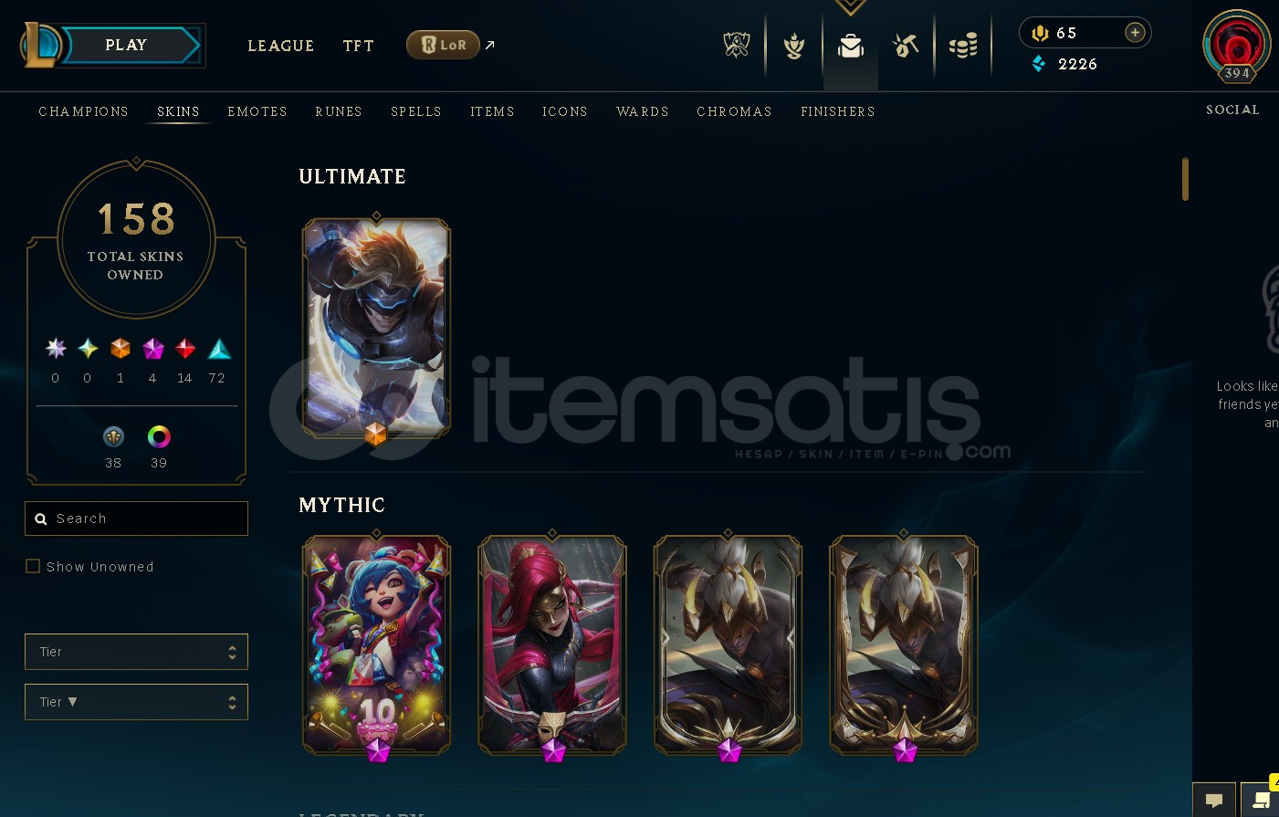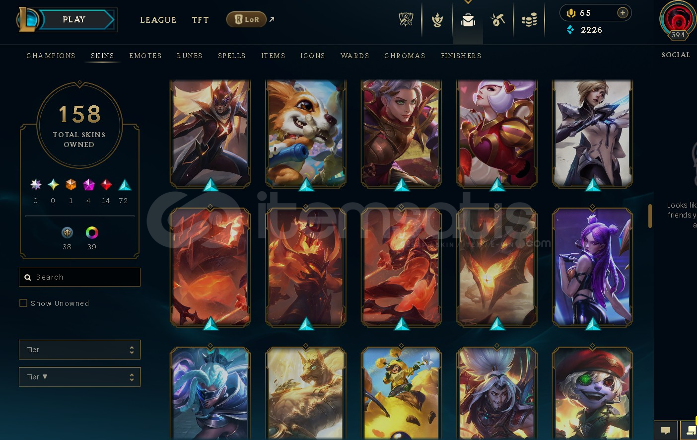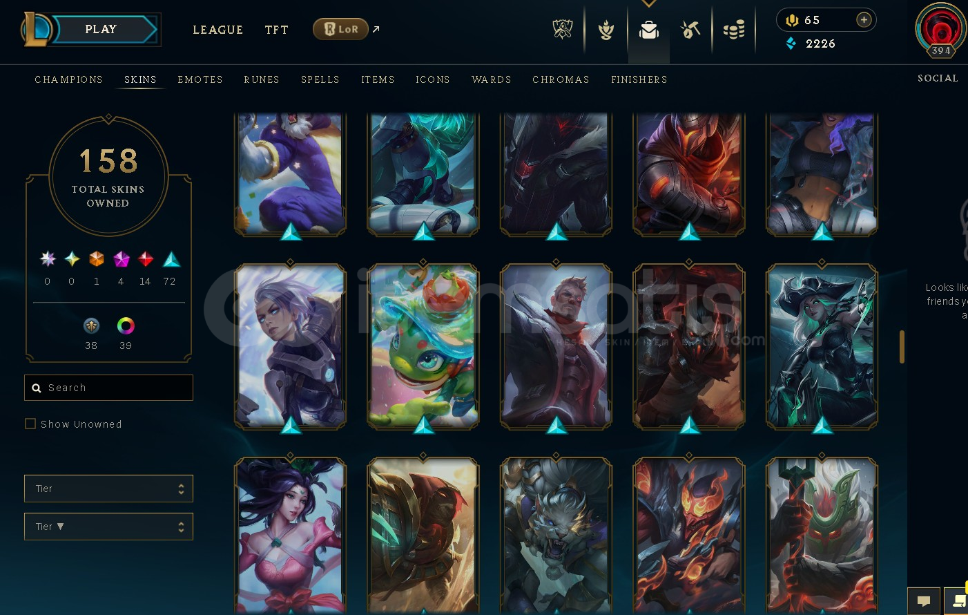 158 skin mevcut ve tüm şampiyonlar mevcut.