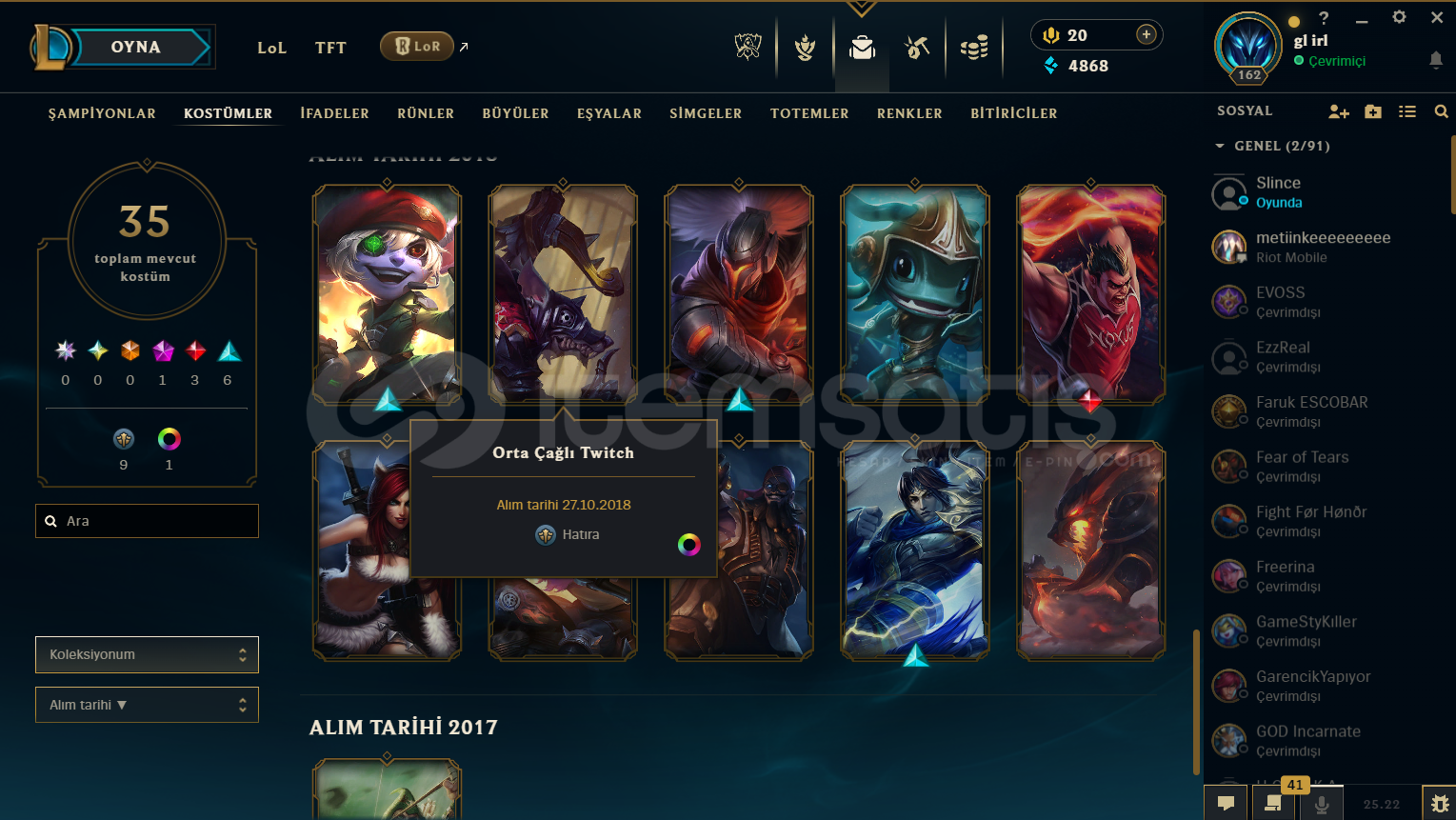162 SEVİYE / 35 KOSTÜMLÜ MAİNLEMELİK HESAP