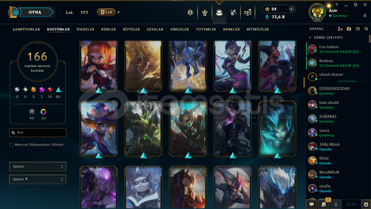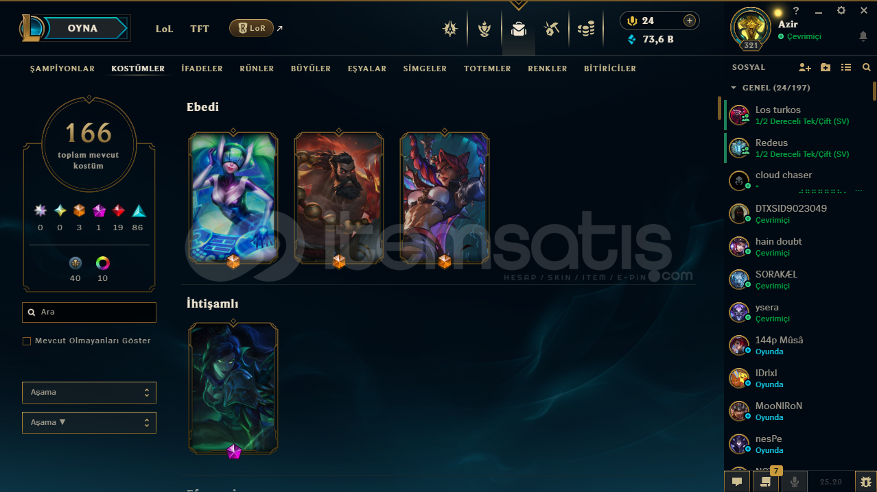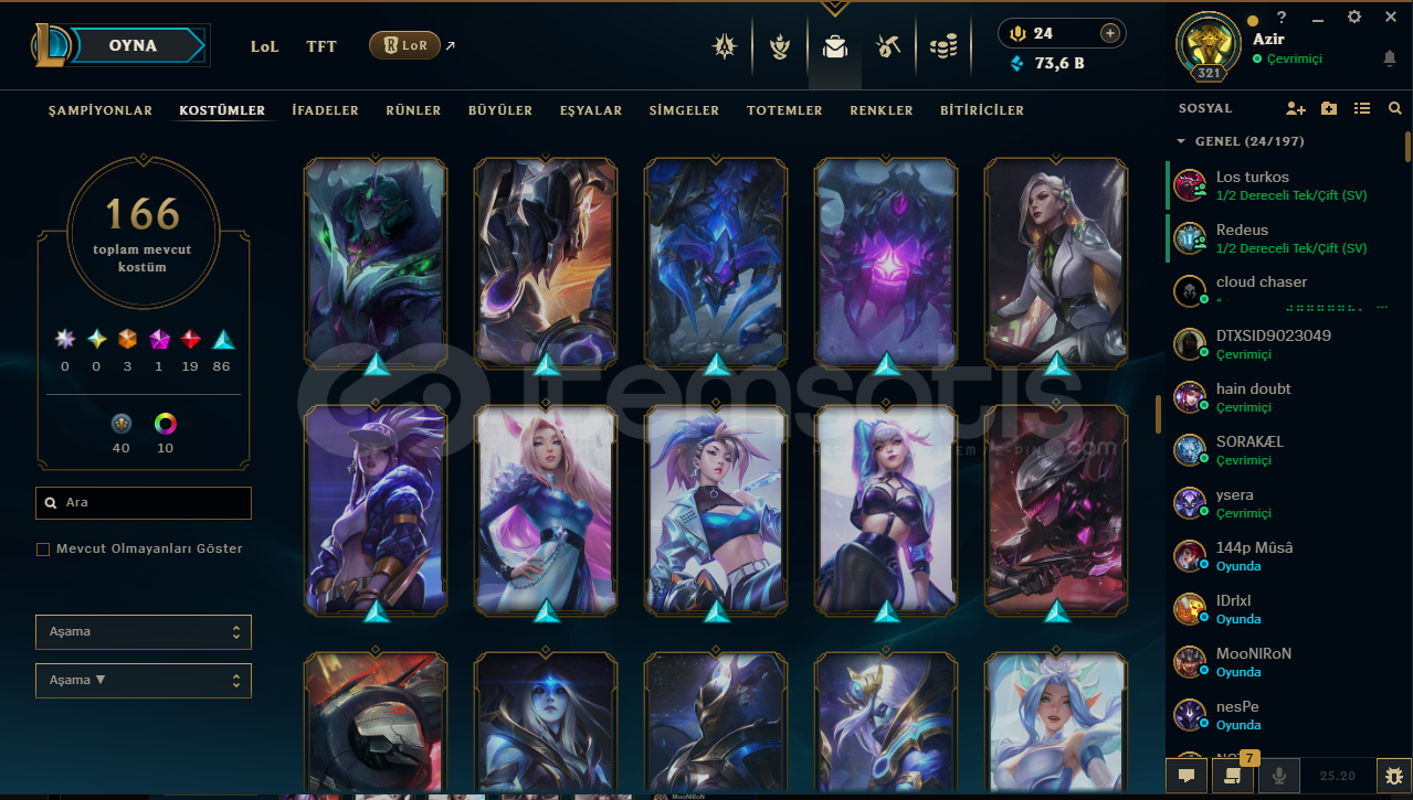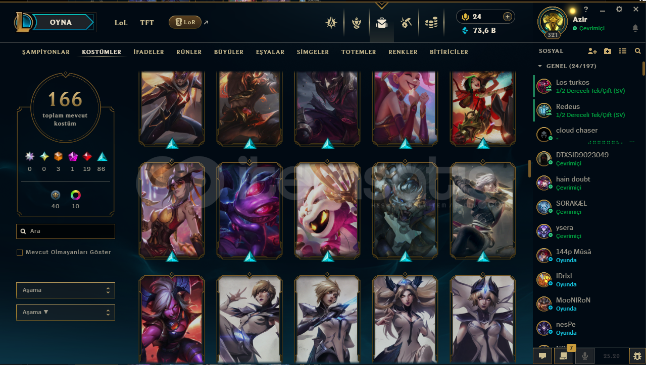 166 Kostümlü 321 LwL Hesap / 2012 Özel Riven