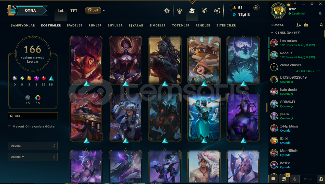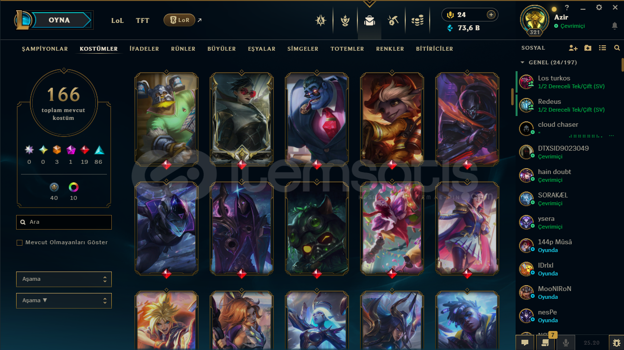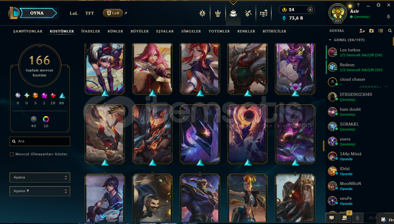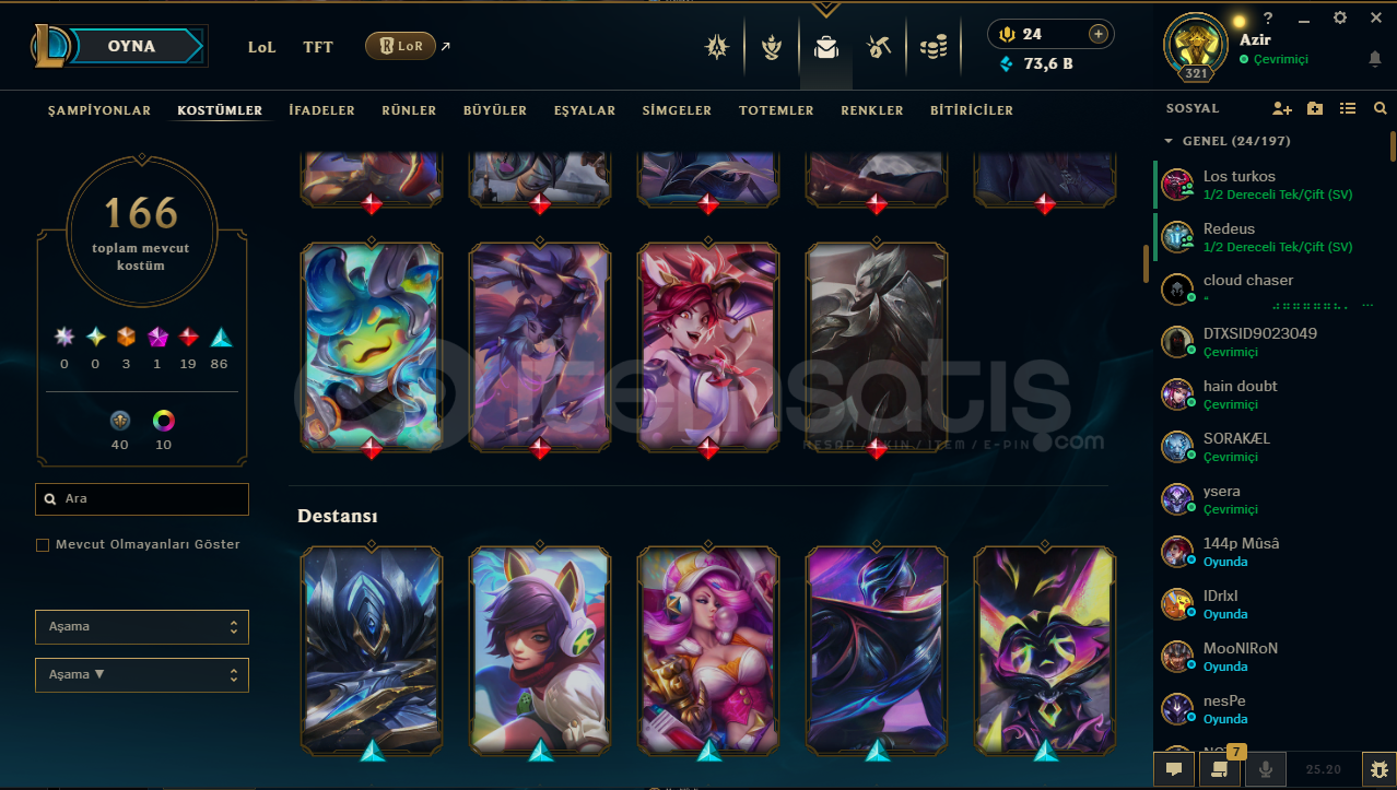 166 Kostümlü 321 LwL Hesap / 2012 Özel Riven
