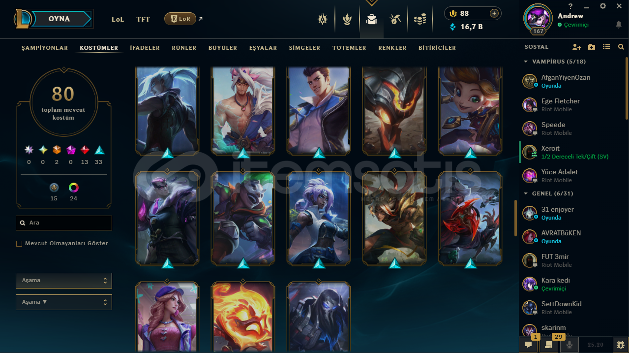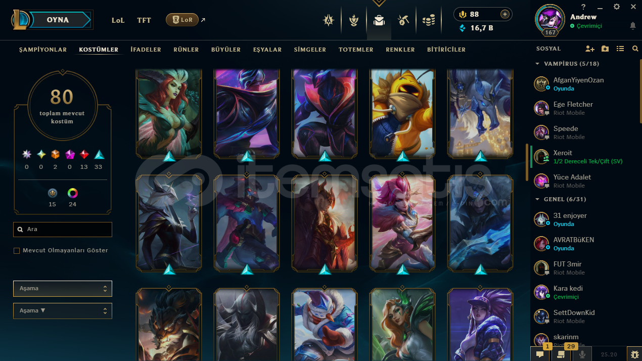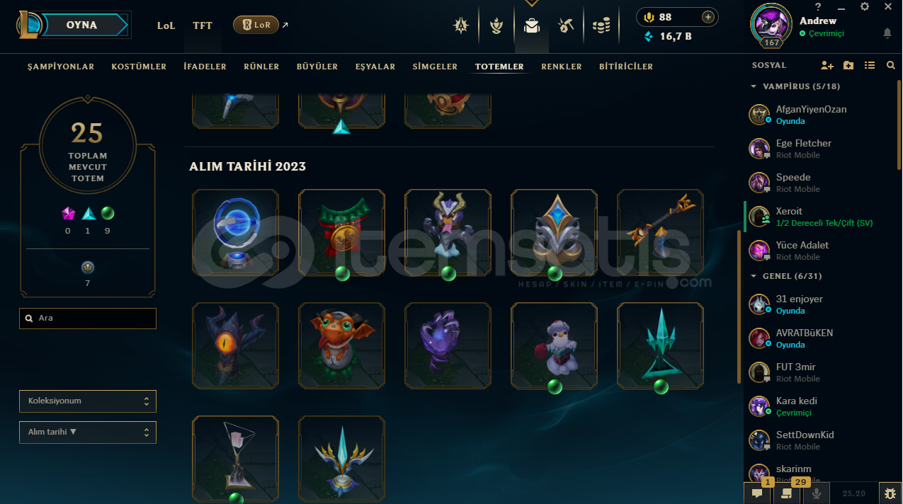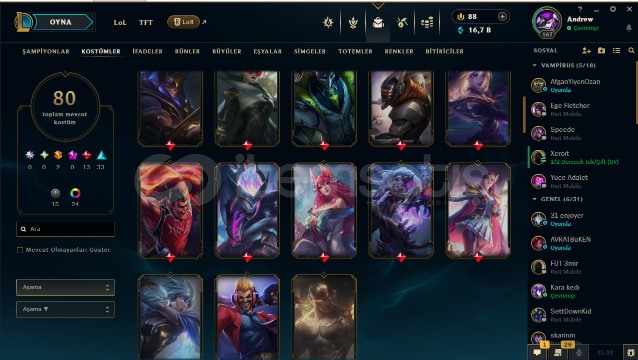 ♡ Abiler Ablalarım Öğrenciyim Maddi Sıkıntıalrdan dolayı hesablarımı satışa koydum rahatlıkla güvenip alabilirsiniz♡ İlan ile sormak istediğiniz birşey varsa yazabilirsiniz♡ Hesabım Emek Verilerek Kasılmıştır .♡ Zed 350K♡80 Seviye Valorant Hesabıda Var İçerisinde .