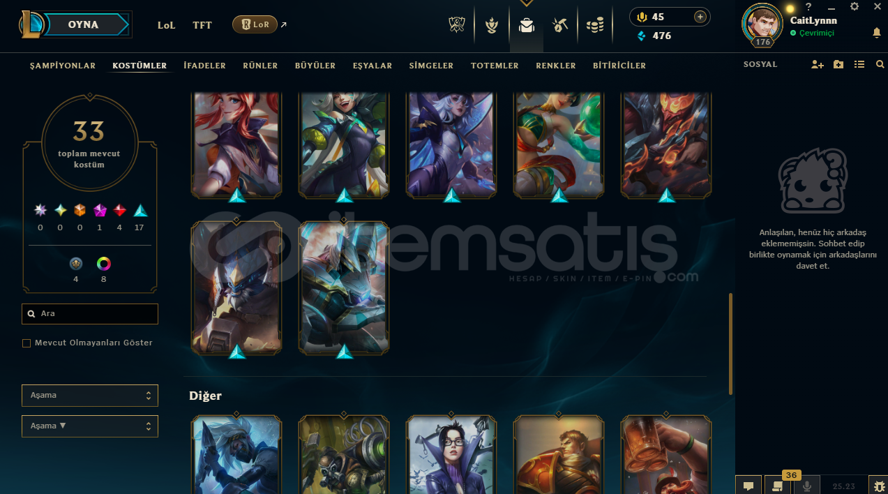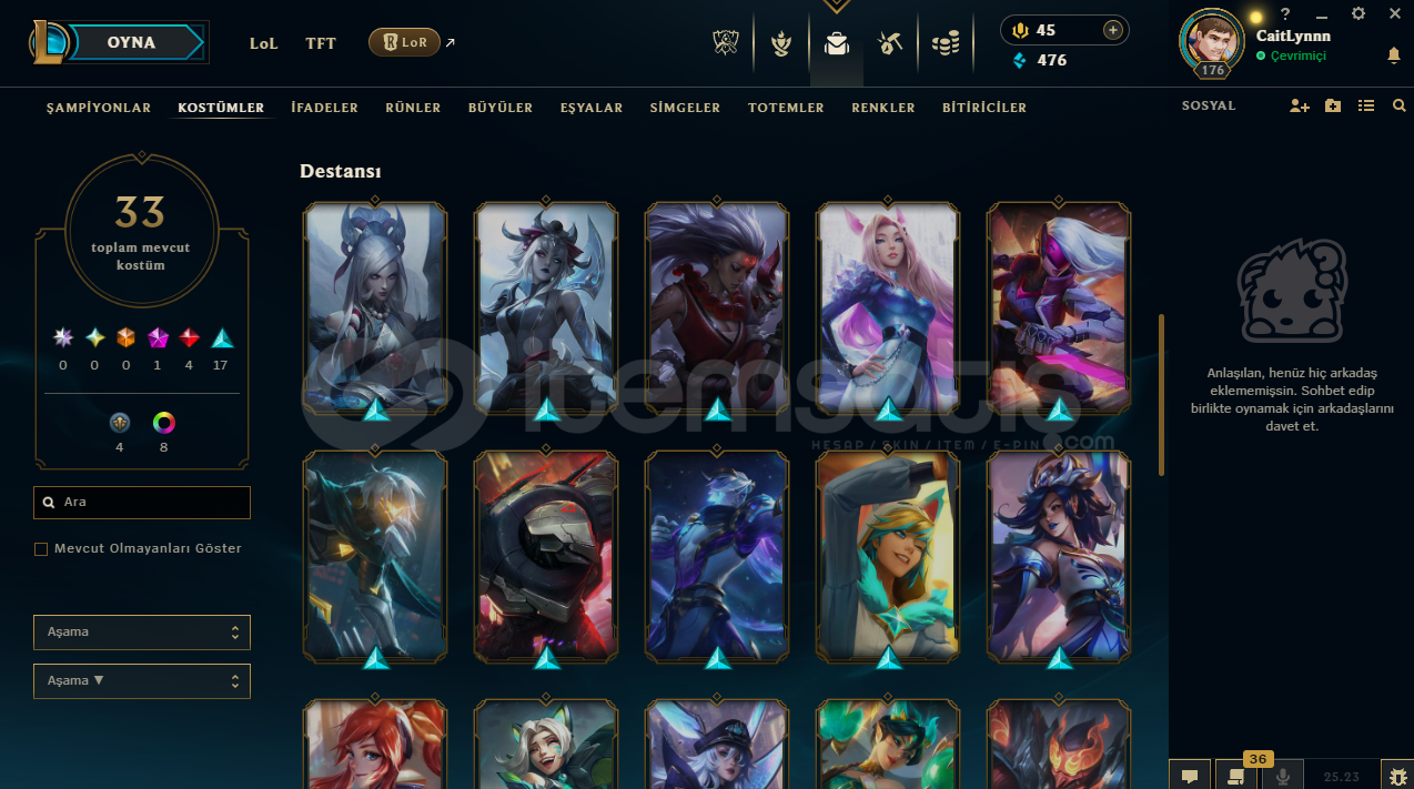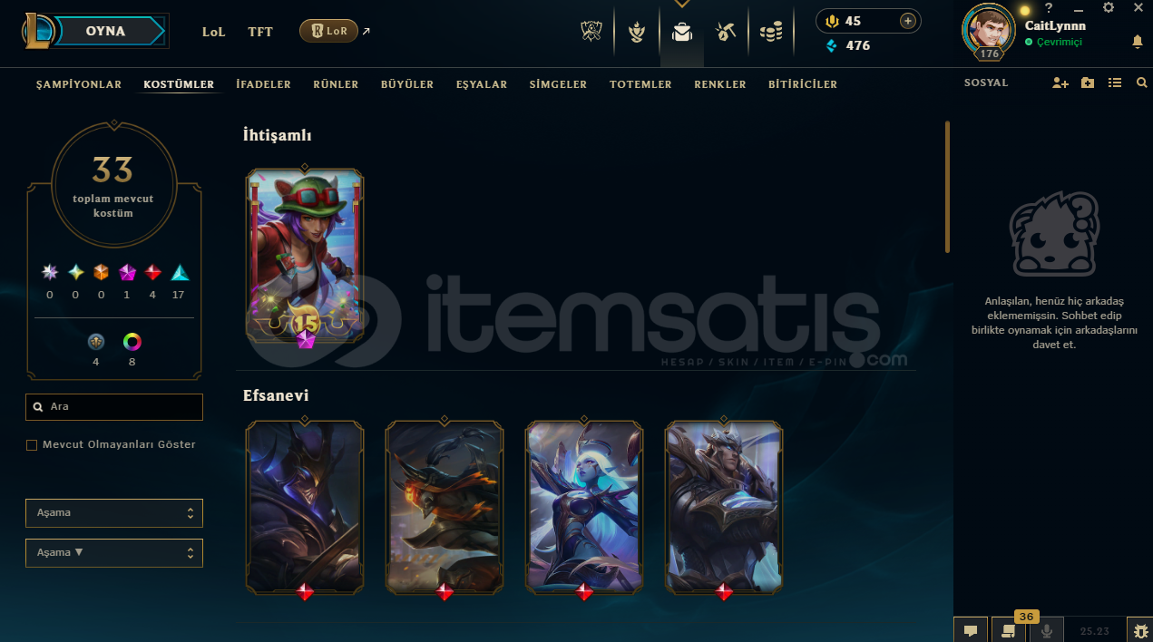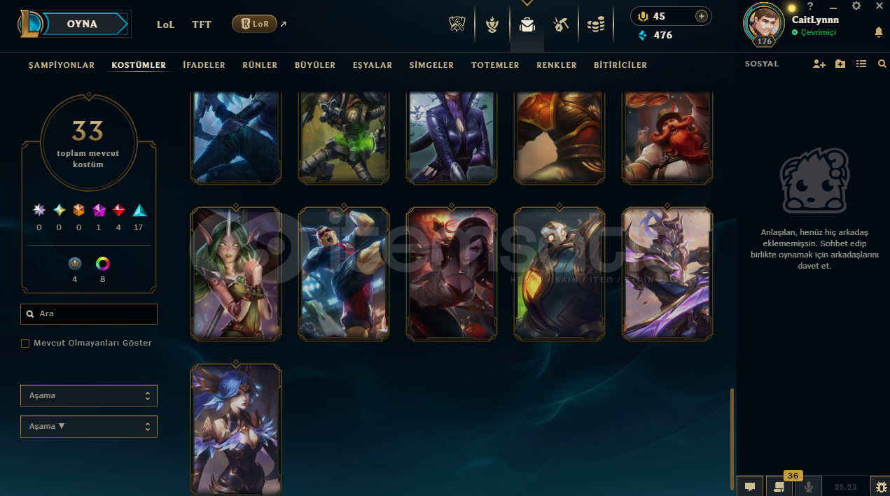 uygun bütçeli lol hesapları için profilime göz atabilirsinizhesap tr hesabıdır.hesabın maili değişmektedir.hesabın herhangi bir banı yoktur.hesap 3 takdir seviyesine sahiptir.hesapta 101 şampiyon, 33 kostüm, 476 mavi öz vardır.hesapta 1 ihtişamlı, 4 efsanevi, 17 destansı kostüm vardır.ekran kaydı açmayı unutmayınız.