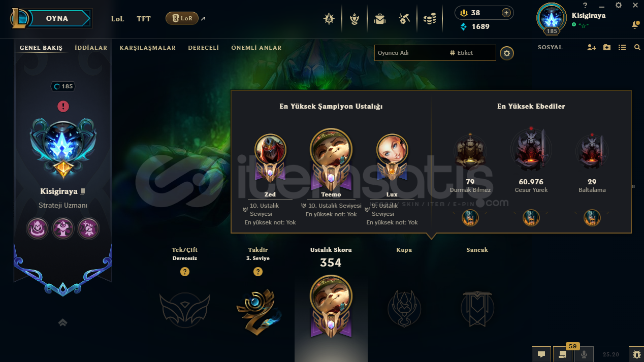 uygun bütçeli lol hesapları için profilime göz atabilirsinizhesap tr hesabıdır.hesabın maili değişmektedir.hesabın herhangi bir banı yoktur.hesap 3 takdir seviyesine sahiptir.hesabın clash numarası boştadır.hesapta 121 şampiyon, 92 kostüm, 1689 mavi öz vardır.hesapta 1 ebedi, 1 ihtişamlı, 8 efsanevi, 33 destansı kostüm vardır.ekran kaydı açm...