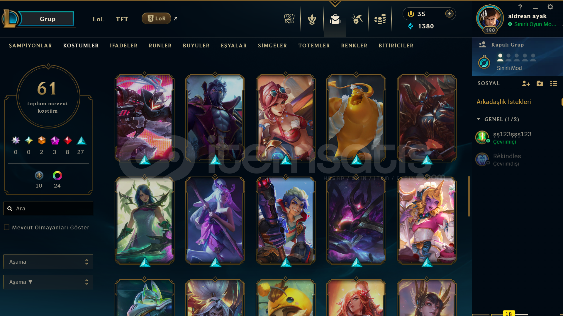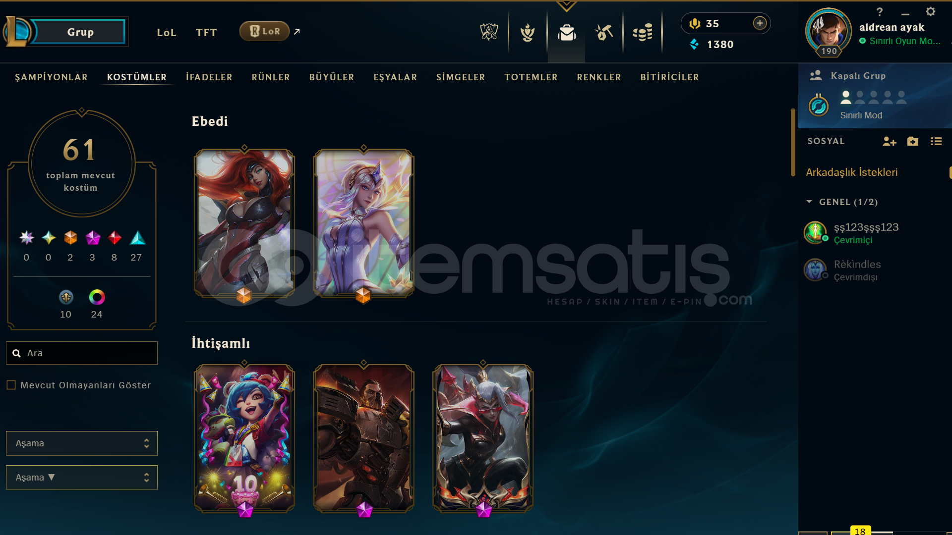 190 level + 61 kostümlü + gold 3 + sahıbınden !