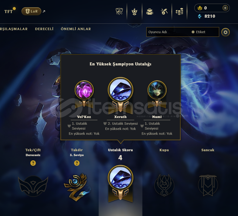Hesabın op.gg linki: https://op.gg/tr/lol/summoners/TR/Y%C3%9CCE%20BELKACEM-TR1
