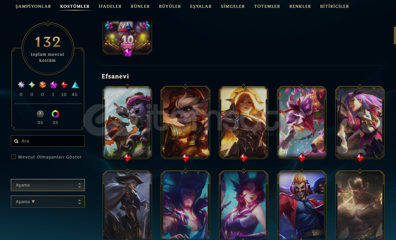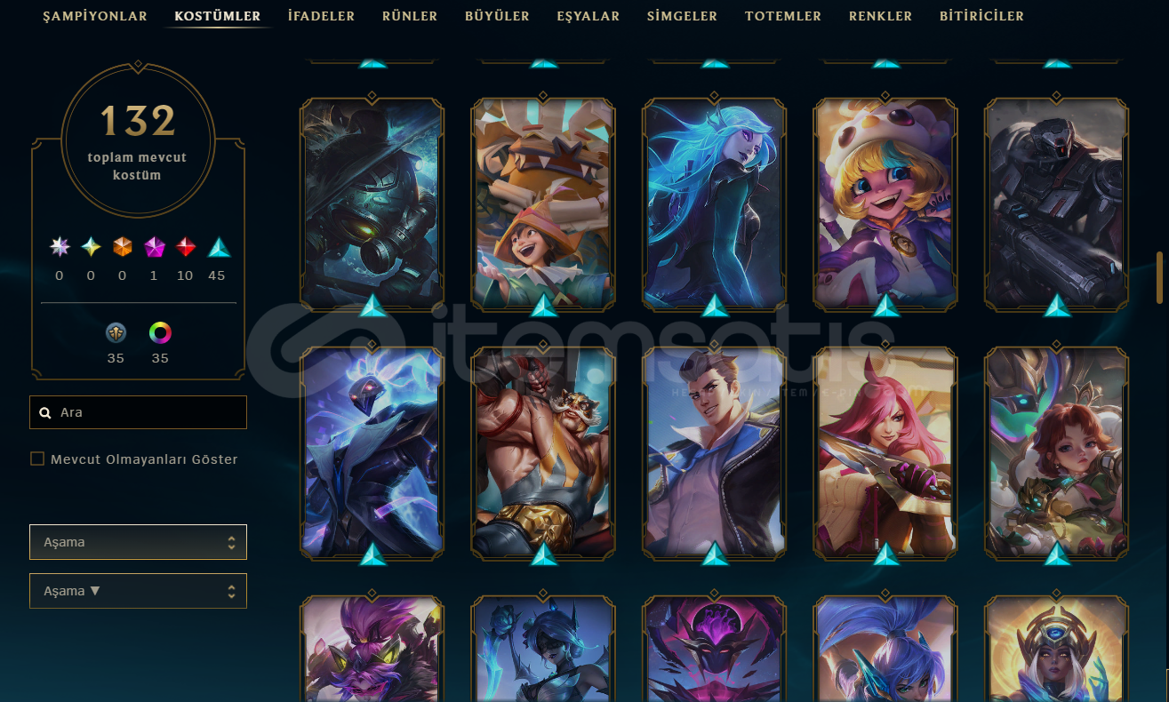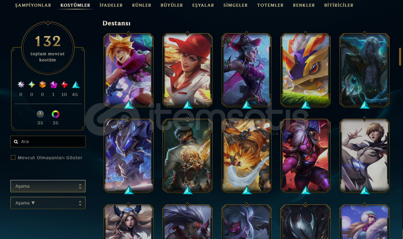 Hesap İçeriği170 ŞAMPİYON 132 KOSTÜM 145 İfade237 Simge31 Totem36 Renk Paketi    USTALIKLAR 1.9 MİLYON KATARİNA300 K LİSSANDRA 200 K Lee Sin Hesap fırsat ürünüdür kısa süreliğine bu fiyatta kalacaktır.Diamonddan zümrüte düşmedir, diğer sezonlarda diamond oldu.Görsellerde de gördüğünüz gibidir farkl...