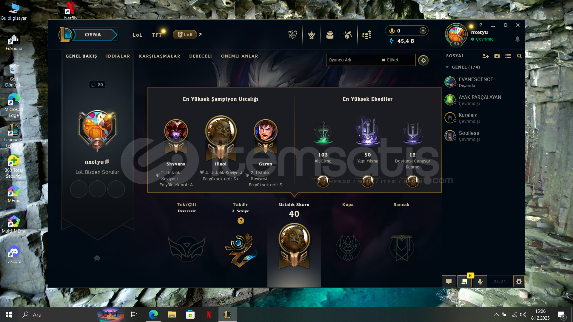 hesap fotoğraftaki gibidir unranked 20 level 45 bin mavi öz alana hayırlı olsun