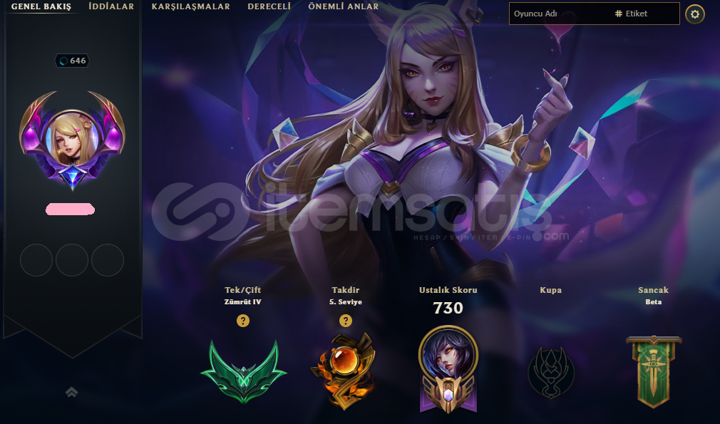 League of Legends hesabımı satıyorum. 2013 yılında açılmış, uzun süredir aktif olarak kullanılmış eski ve güvenilir bir hesaptır. Smurf değildir.