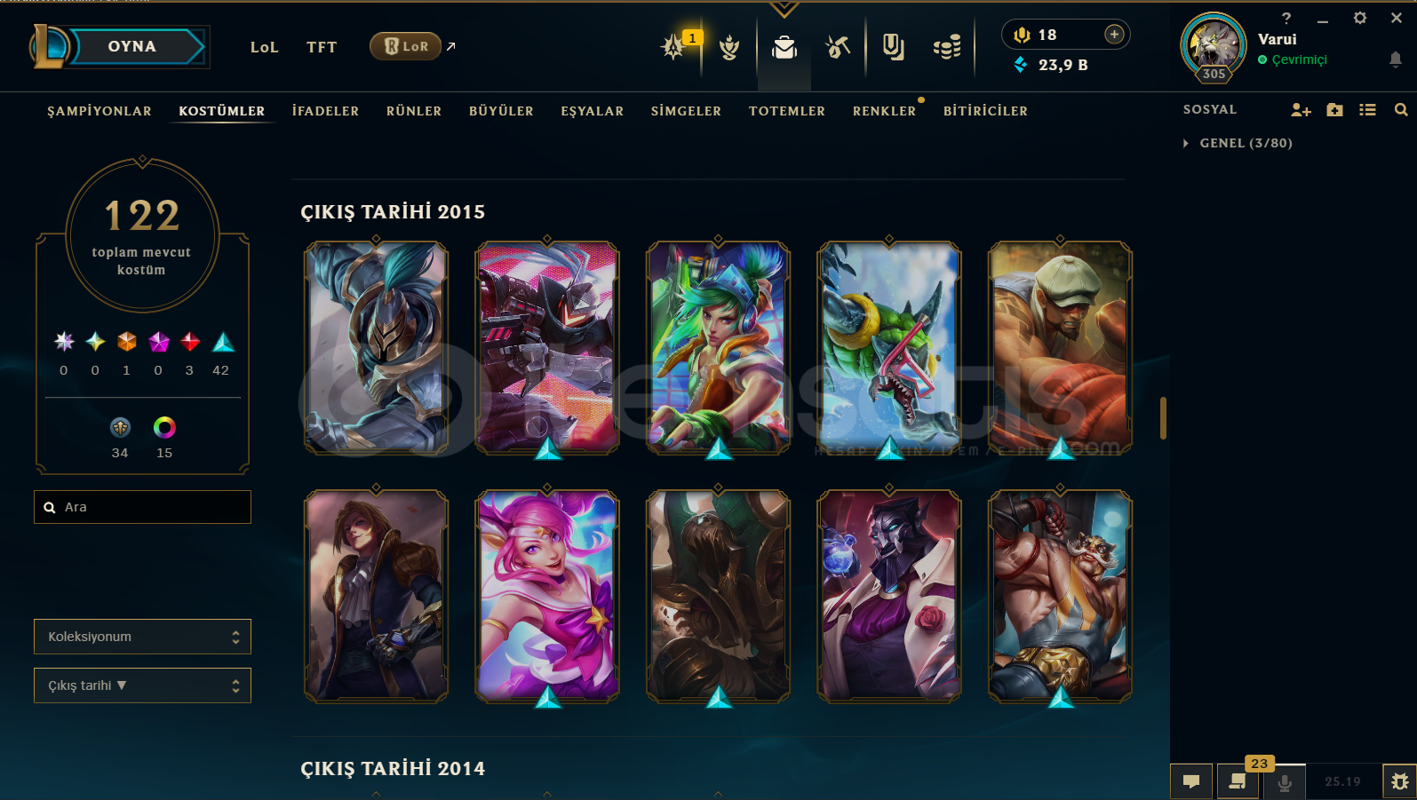 2014’ten Beri Aktif Koleksiyonluk LoL TR Hesap