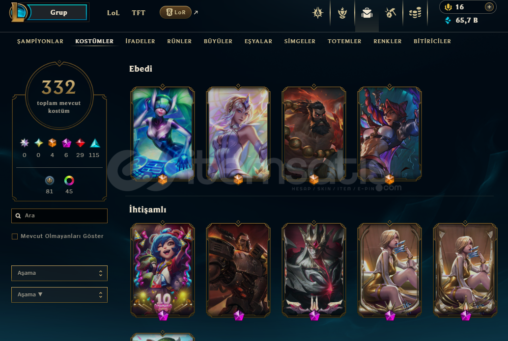 1,5 MİLYON OTP DARİUS VE 332 KOSTÜMLÜ ÇARIMI MADDİ DURUMDAN DOLAYI SATILIĞA KOYUYORUM LÜTFEN PAZARLIK İSTEMEYİNBÜTÜN ŞAMPİYONLAR AÇIK 4 EBEDİ KOSTÜM 29 EFSANEVİ KOSTÜM 6 İHTİŞAMLI KOSTÜM VAR AYRİYETEN DEHŞET YILDIZI DARİUS KOSTÜMÜ İÇİNDE ALICIYA ŞİMDİDEN HAYIRLI OLSUN