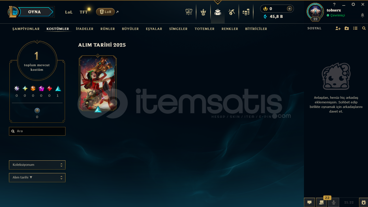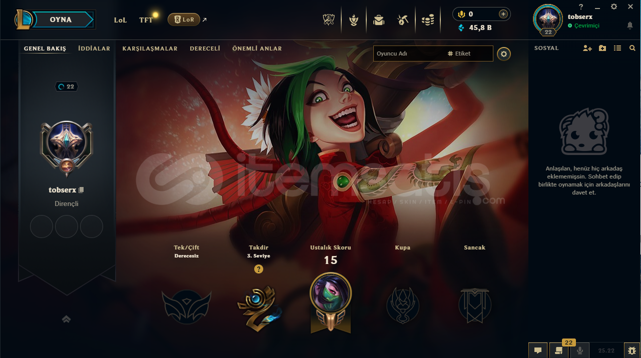 22 LVL HESAP JİNX KÖSTÜM VAR 44K MAVİ ÖZ ➤DAHA FAZLA LEAGUE OF LEGENDS HESAPLARI İÇİN PROFİLİMİ ZİYARET EDİNİZ.