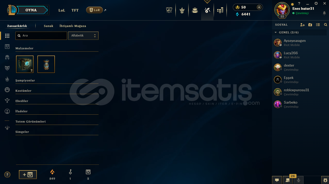 6000 MÖ - 50RP - 849TÖ - 2 Hextec Sandığı - 1 Hextec Anahtarı - 1 Temel Şampiyon Kapsülü Bulunmaktadır Bu Detayı Çoğu Satıcı Vermez!