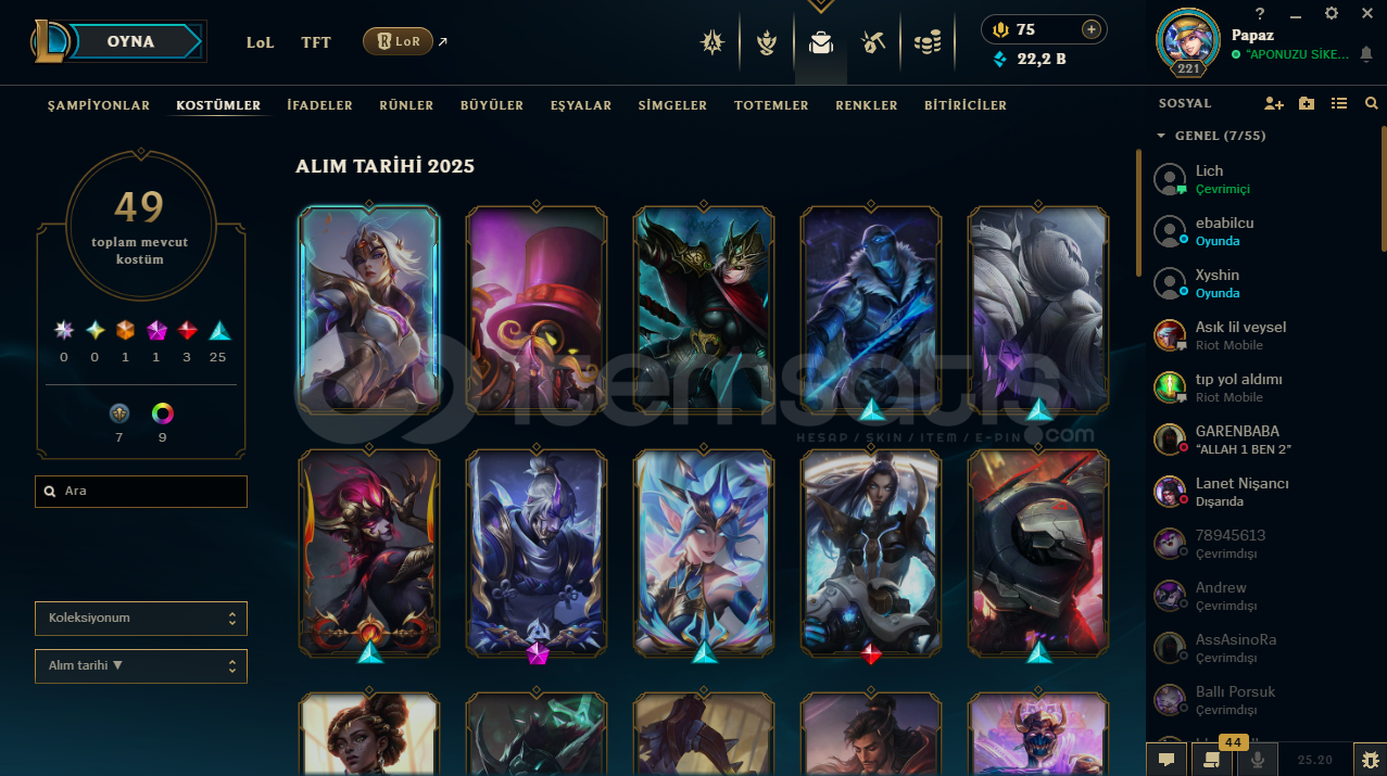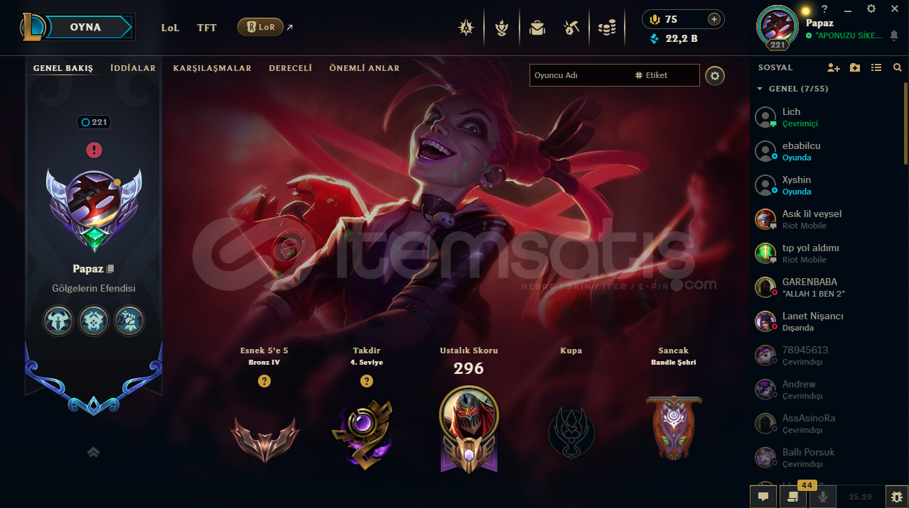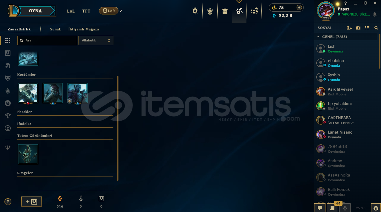 ♡ Abiler Ablalarım Öğrenciyim Maddi Sıkıntılarrdan dolayı hesablarımı satışa koydum rahatlıkla güvenip alabilirsiniz♡ İlan ile sormak istediğiniz birşey varsa yazabilirsiniz♡ Hesabım Emek Verilerek Kasılmıştır . ♡ Zed 250K ♡40Seviye Valorant Hesabıda Var...