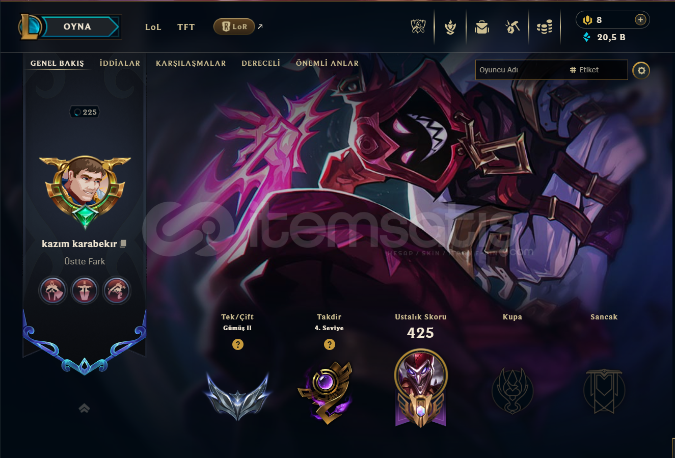 225 LVL 4 YILLIK LOL HESABI MAİL DEĞİŞTİRİLİR BOL SKİNLİ 25 LP CİVARI İÇİNDE BOLCA ANAHTAR BULUNUR YANINDA 2 KES PASS ALINMIŞ GAYA VANDAL VE FATİH PHANTOMLI 100LVL VALO HESAP PAZARLIK YAPILIR