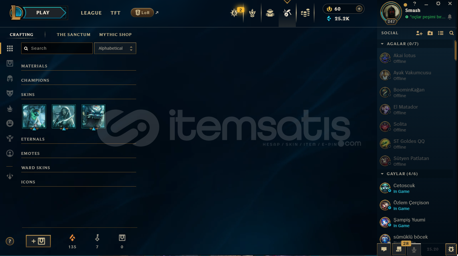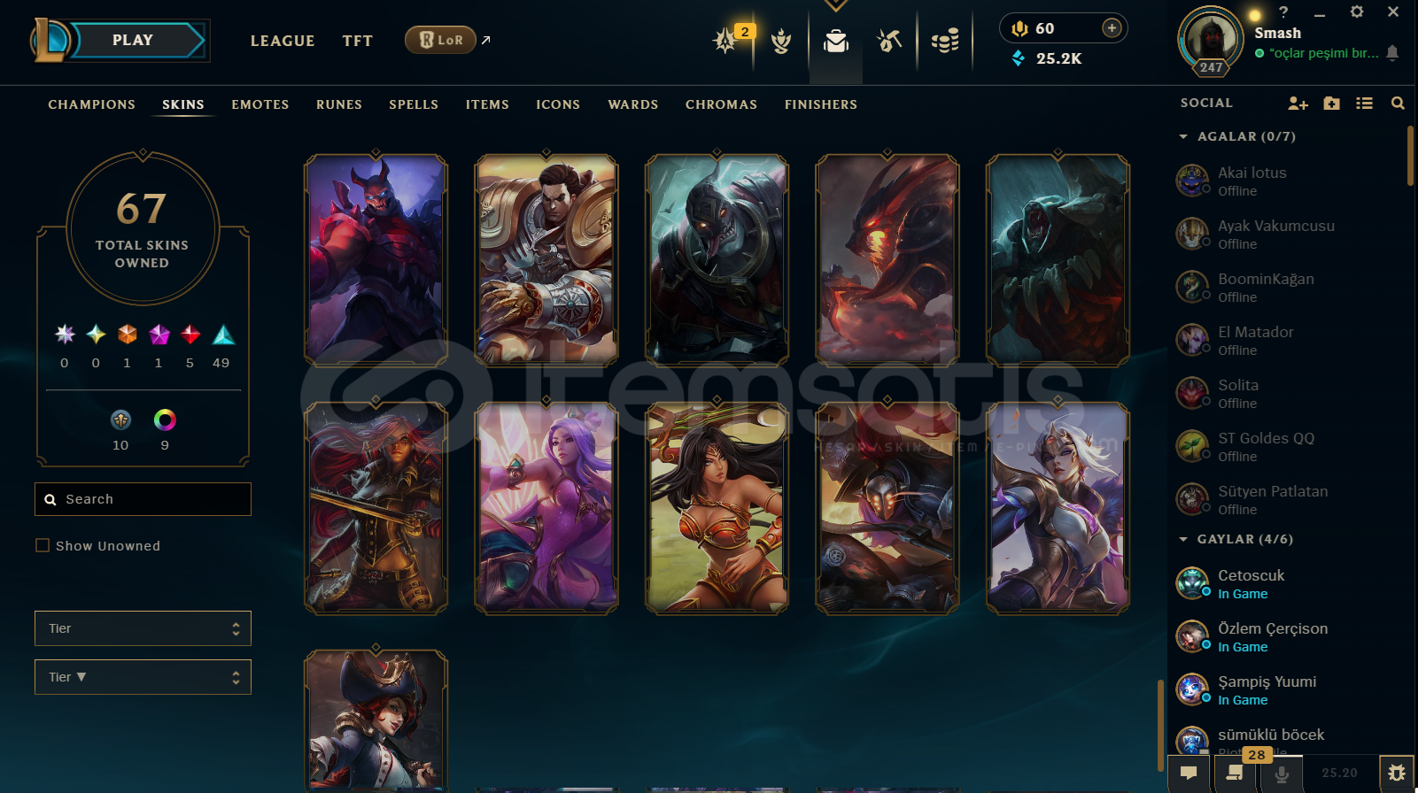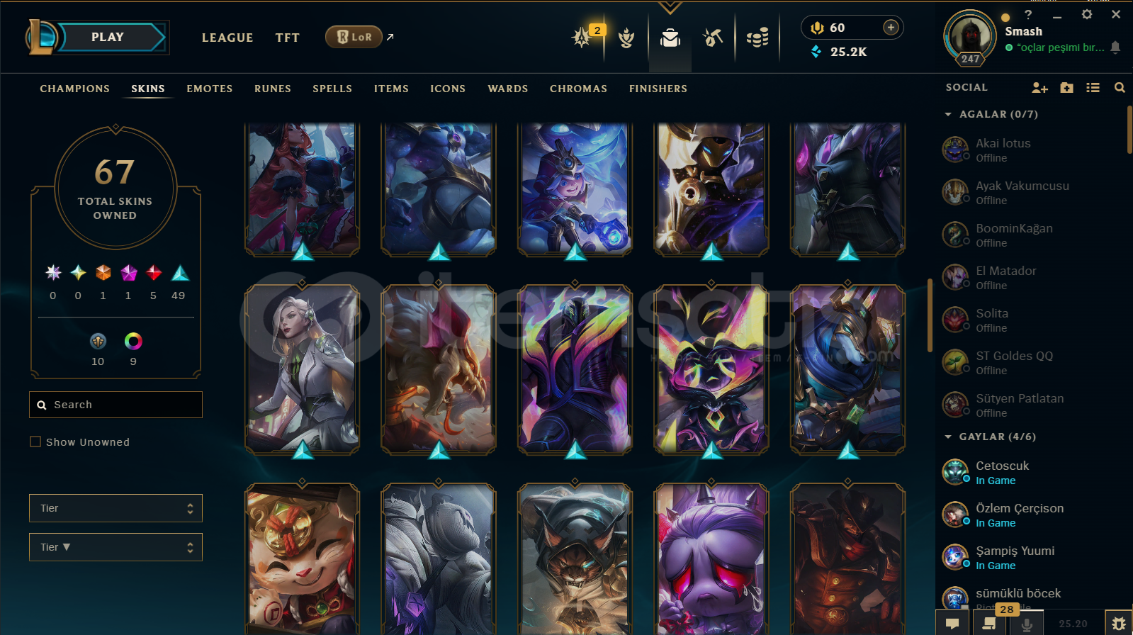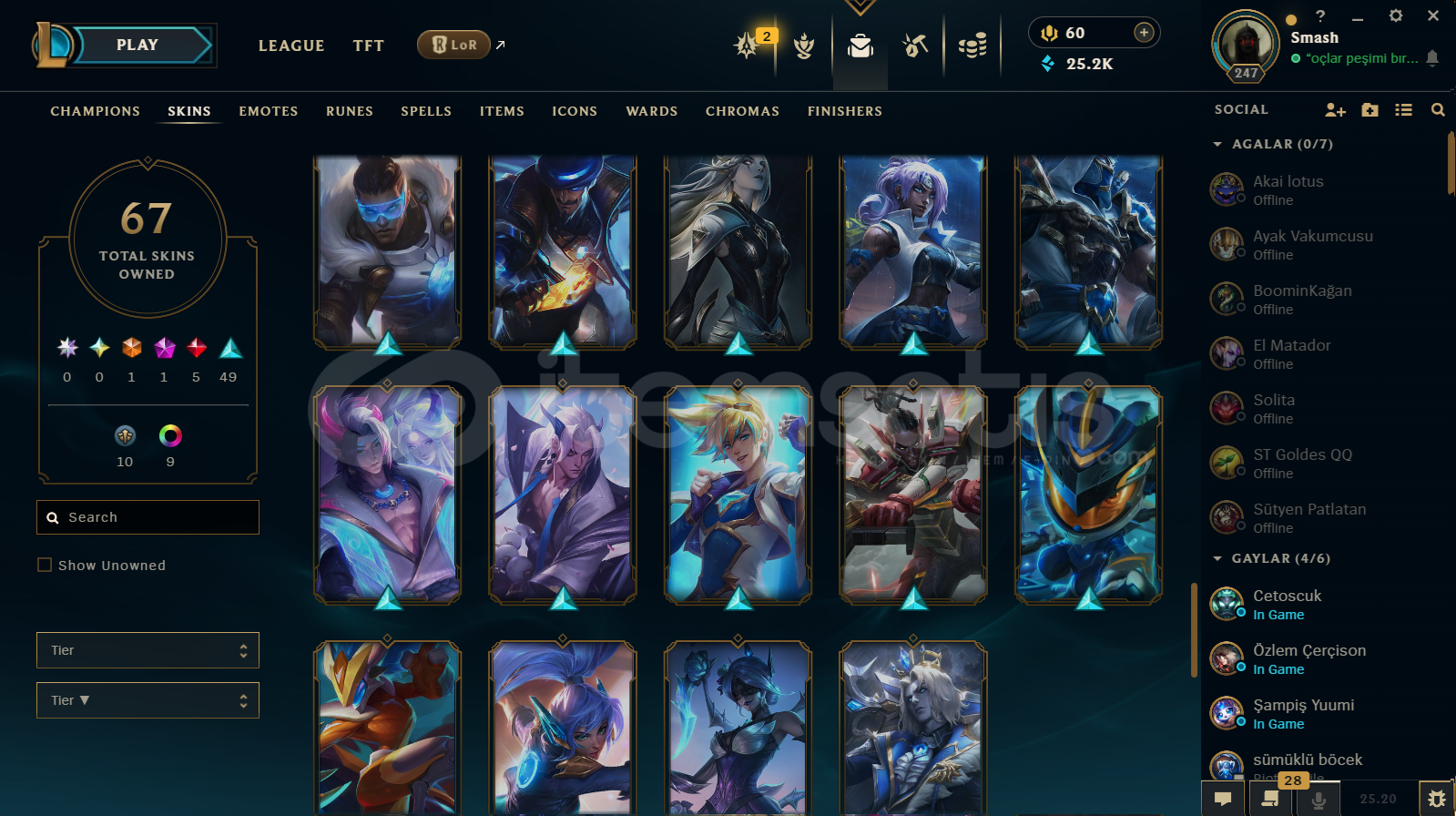 Hesap 247 lvl 67 adet kostüm var takdir seviyesi 4 rankı şuan hem soloq da hem esnekte silver ancak mmr yüksek kasmak kolay sadce bir kaç şampiyon açık değil onlara yetecek kadar mavi öz var hesapta maili değişir çok fazla ustalığı olan bir çar yok kostümlerin hemen hemen her adc karakterinde kostüm var yine çok fazla jungle çarında güzel kostümler var daha detaylı bilgi için dm.