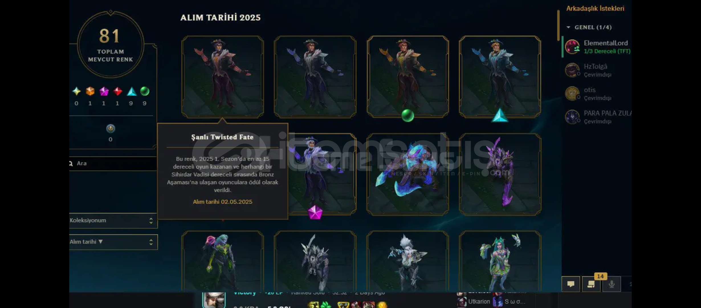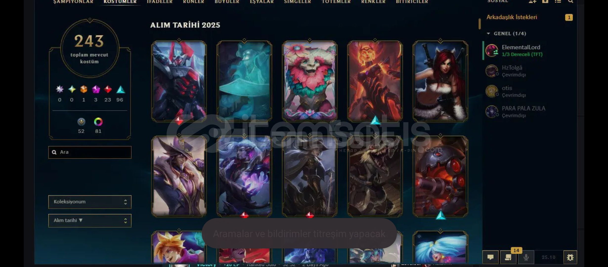 hesap ağırlıklı olarak adc main adclerin hepsinde ustalık ve kostümleri vardır hepsinin renk paketleri dahil