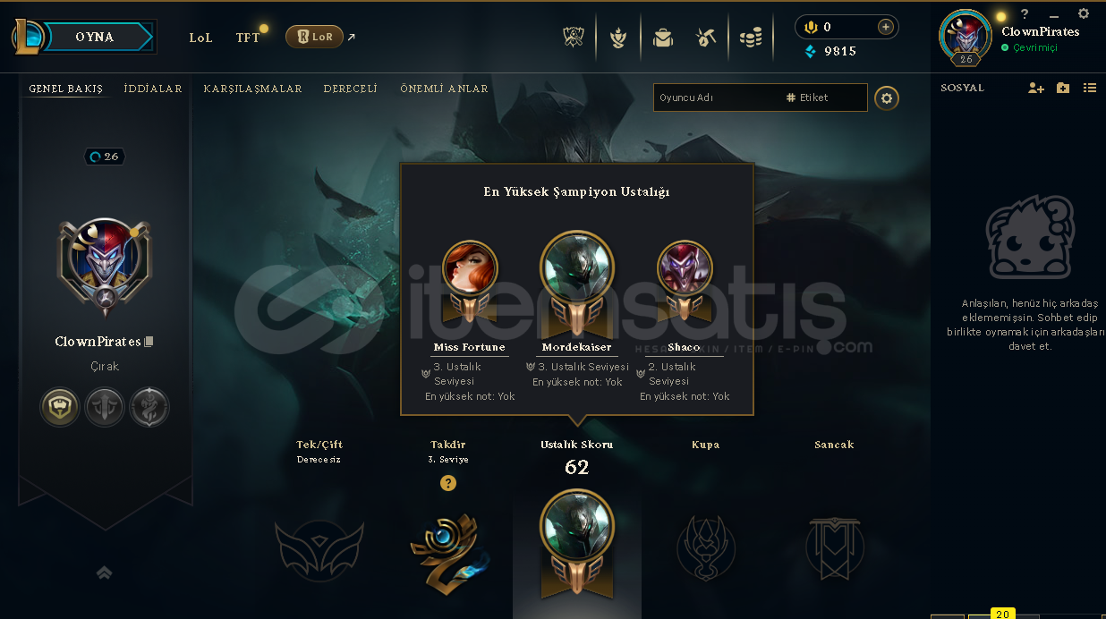 26 LEVEL HESAP1 TANE OMEGA TİMİ TOTEM ENVANTERDE 5 TANE ŞAMPİYONmail degişimi vardırher türlü konuda bilgi tecrübe ile yardımcı olunur magdur edilmezsinizdegerlendirme yaparsanız sevinirim