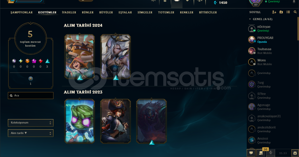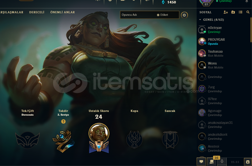 TR27 Level Unranked + 90 Level Valorant hesapValorant maç geçmişi tertemiz unrankedOrigami Nunu - Şafağın Kanatları Morgana-Dunyalar Yıkan Sion gibi değerli kostumler vardır.Ganimette Kadim ilah nocturne ve 3 Anahtar parçacığı varVALORANTFinesse Classic Jigsaw GhostRagnaRocker Frenzy skinleri vardır.Mail değişir kendi mailinize alabilirsiniz.