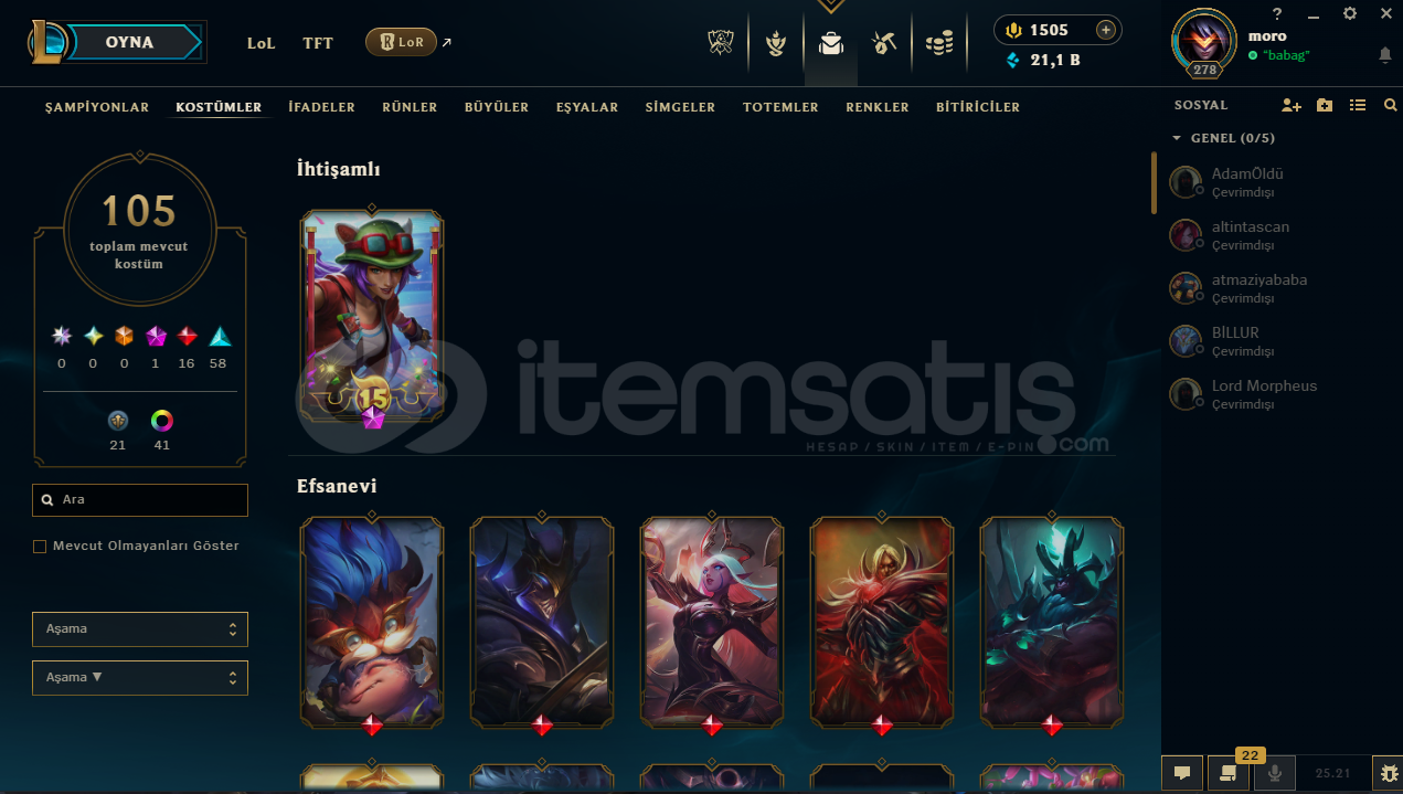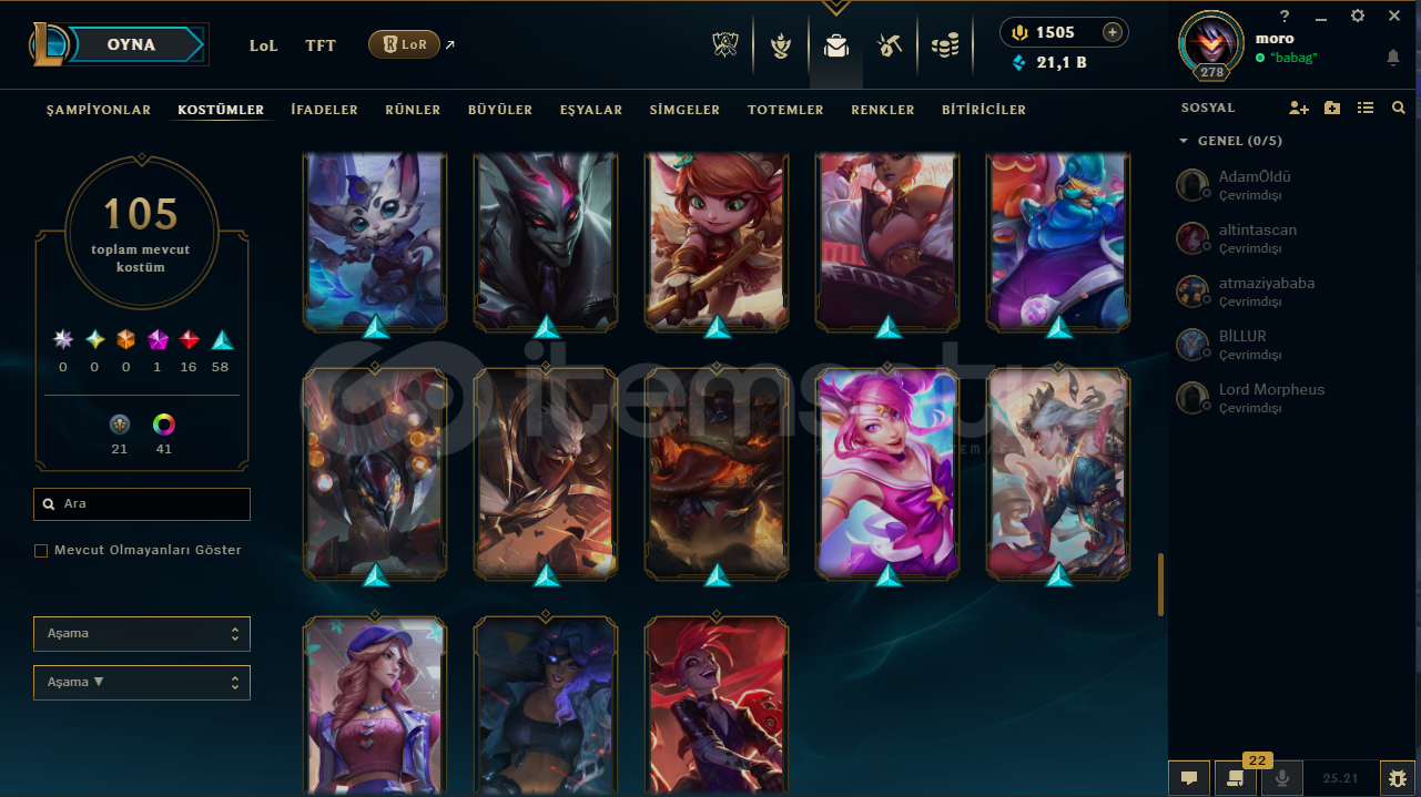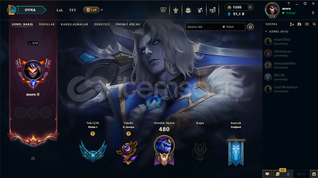 HESABIN İÇERİSİNDE 1500 RP VE SEZON PASS VARDIR DOLU DOLU HESAPTIR TEK ÇİFT PLAT 1 HESAP