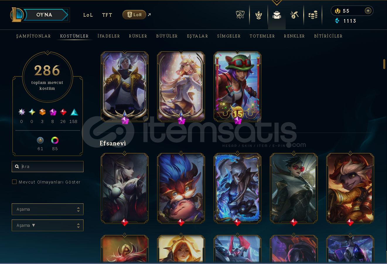 286 KOSTÜM DİA MMR TR LOL HESAP