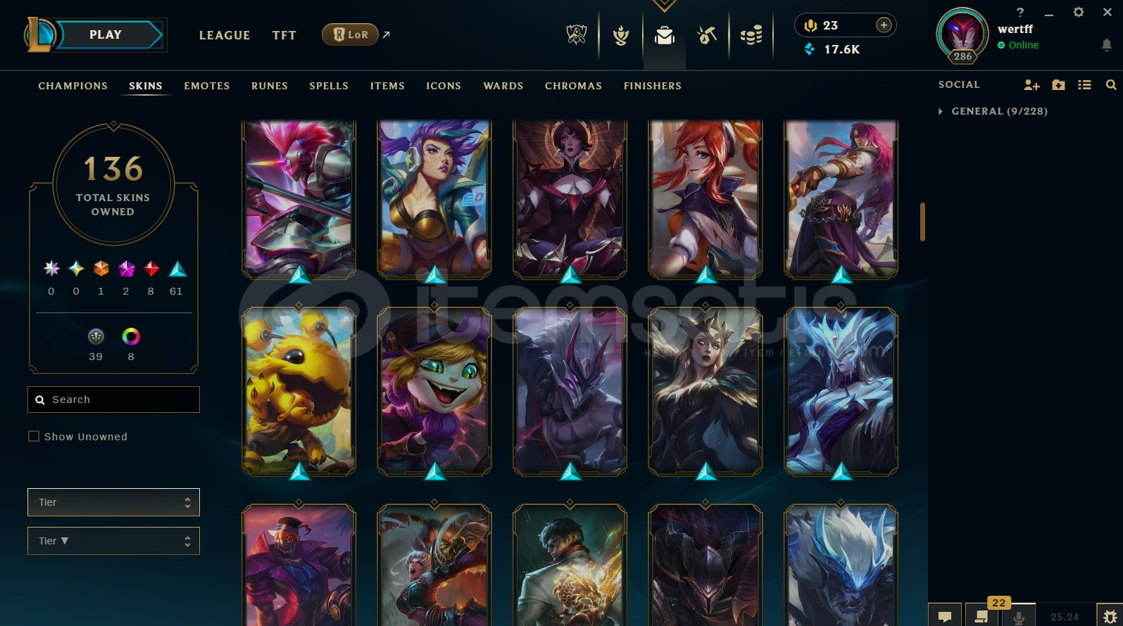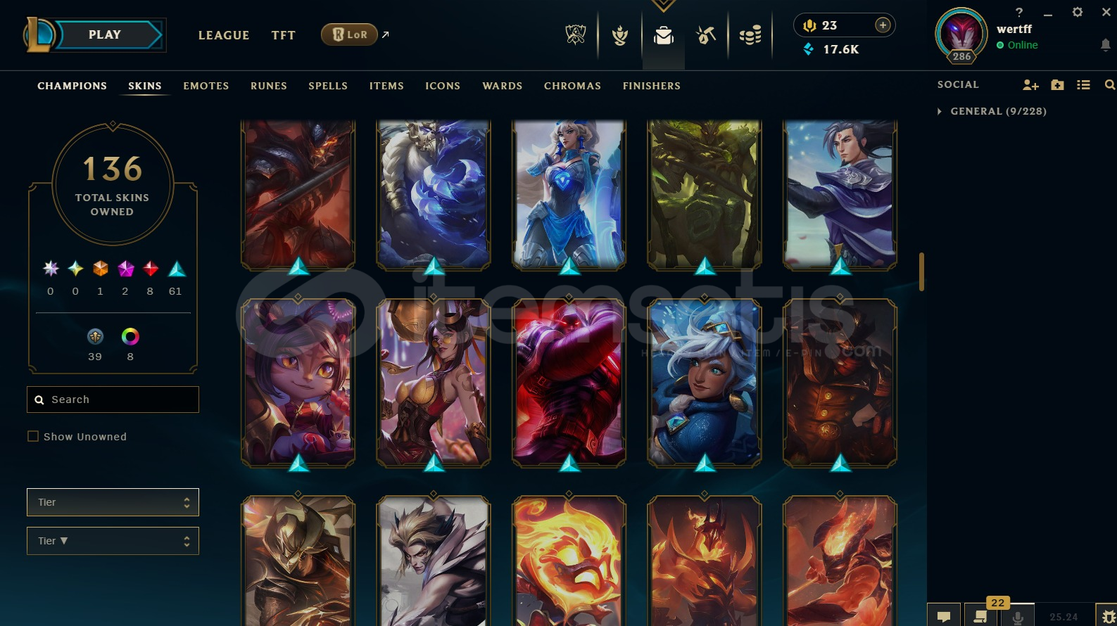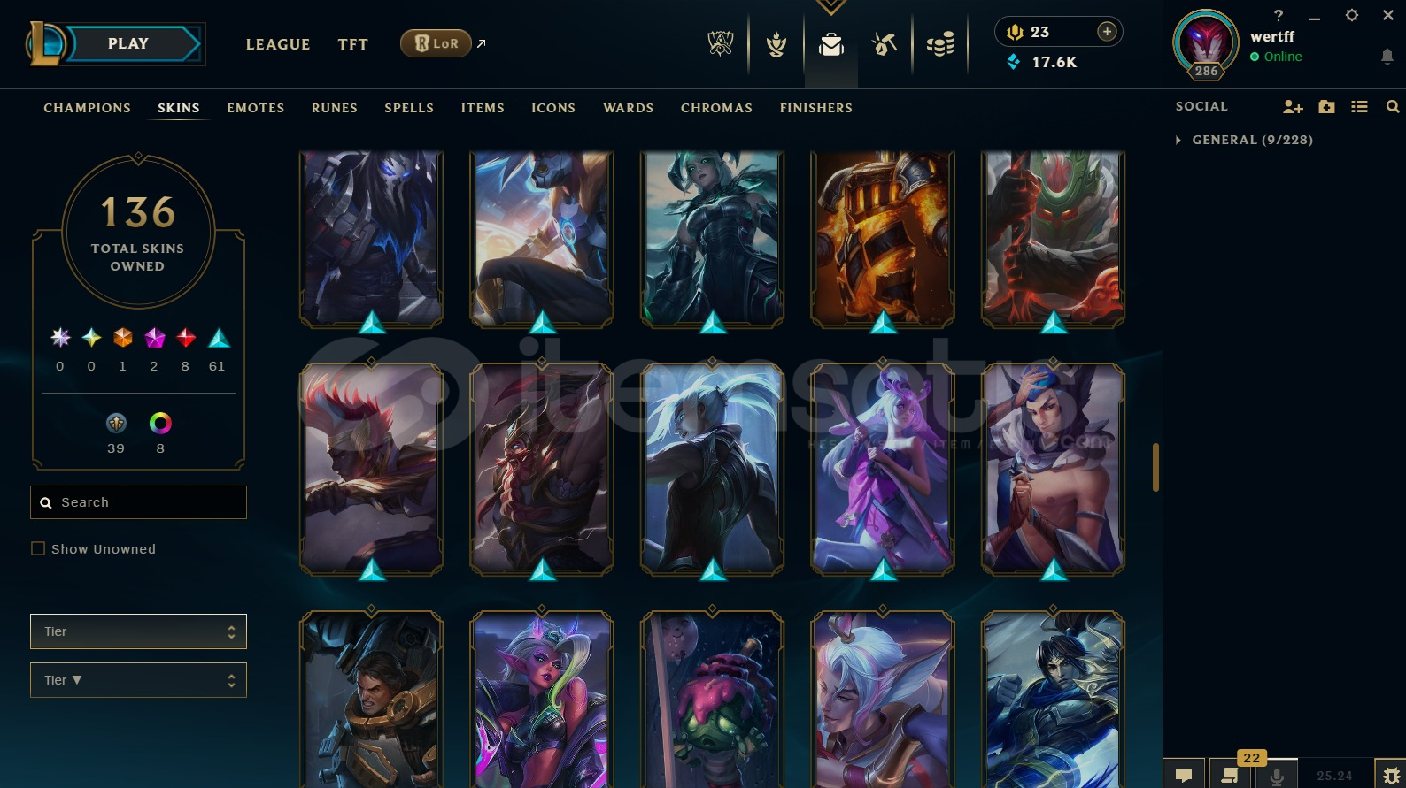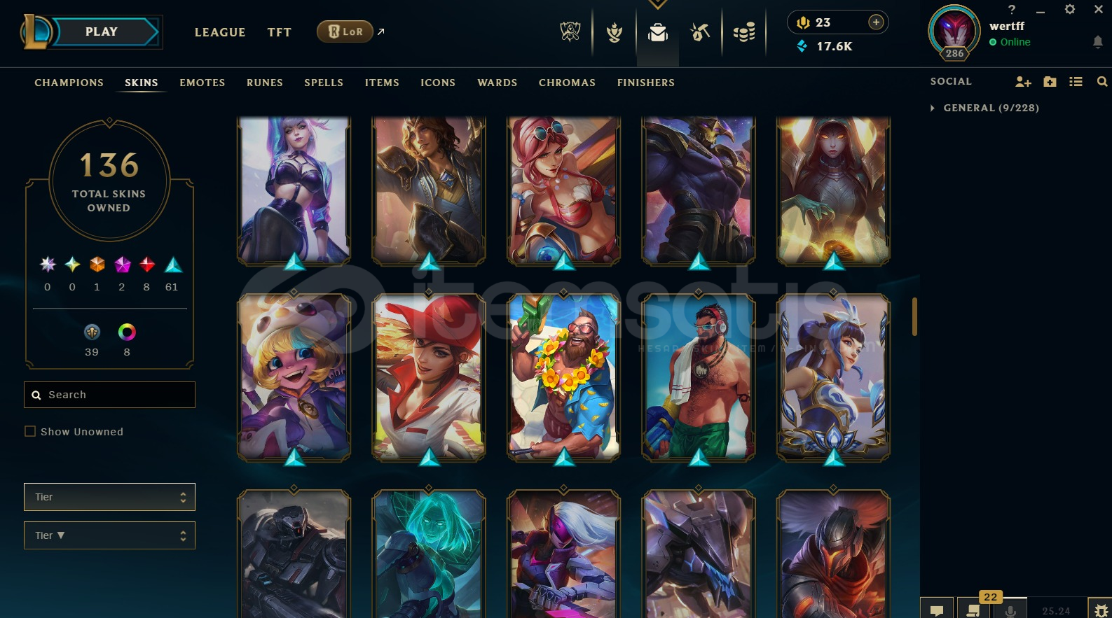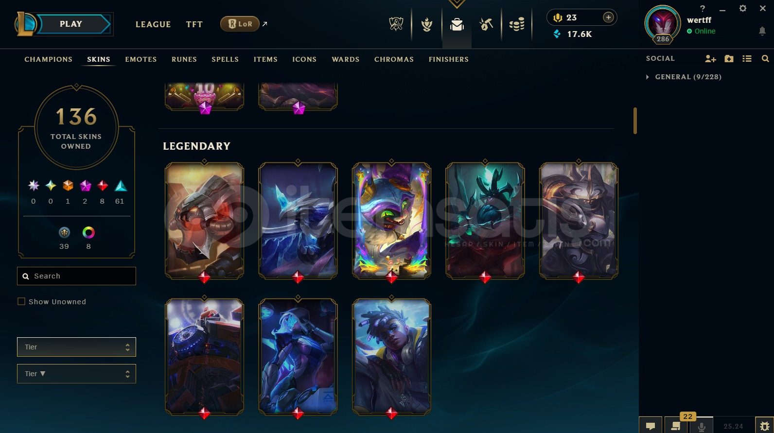 • 136 Açık Kostüm (1 EBEDİ, 2 İHTİŞAMLI, 8 EFSANEVİ, 61 DESTANSI) + 8 Renk Paketi