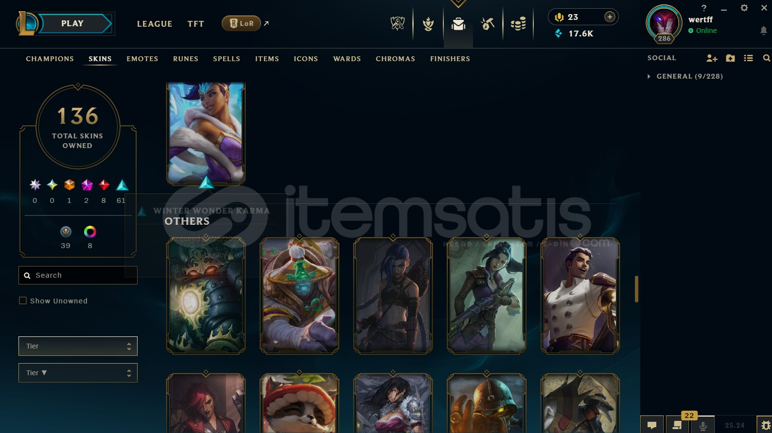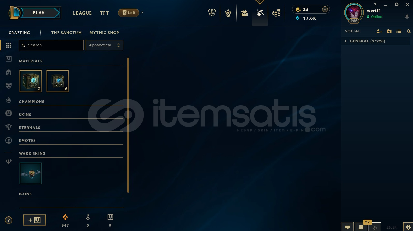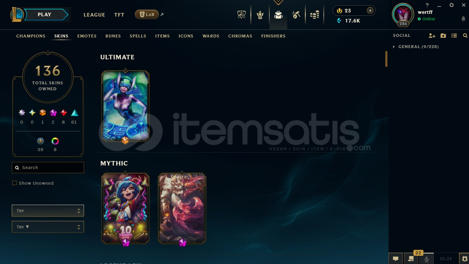 HESAP MAIL DEVRİ İLE TESLİM EDİLECEKTİR.(MAILLE VERİLMEYECEK, MAILI KENDİ MAILİNİZ İLE DEĞİŞTİRDİKTEN SONRA TÜM BİLGİLERİ DEĞİŞTİREBİLİRSİNİZ.)286 Seviye136 Açık Kostüm (1 EBEDİ, 2 İHTİŞAMLI, 8 EFSANEVİ, 61 DESTANSI) + 8 Renk PaketiSolo/Duo--> SILVER(GÜMÜŞ) 4 , FLEX--> UNRANKED17.6K Mavi Öz4. Seviye T...