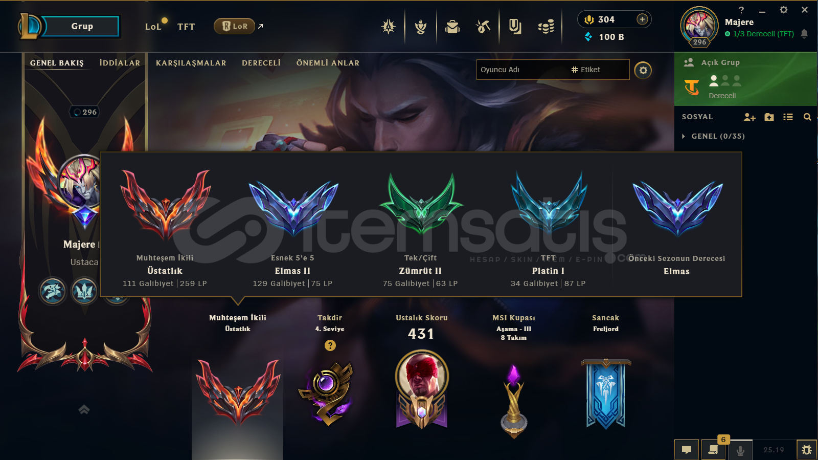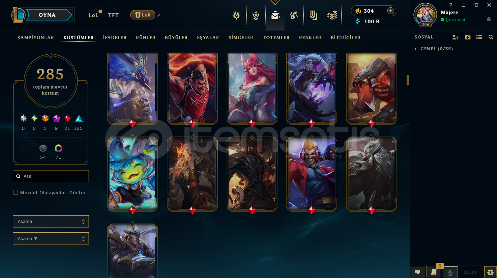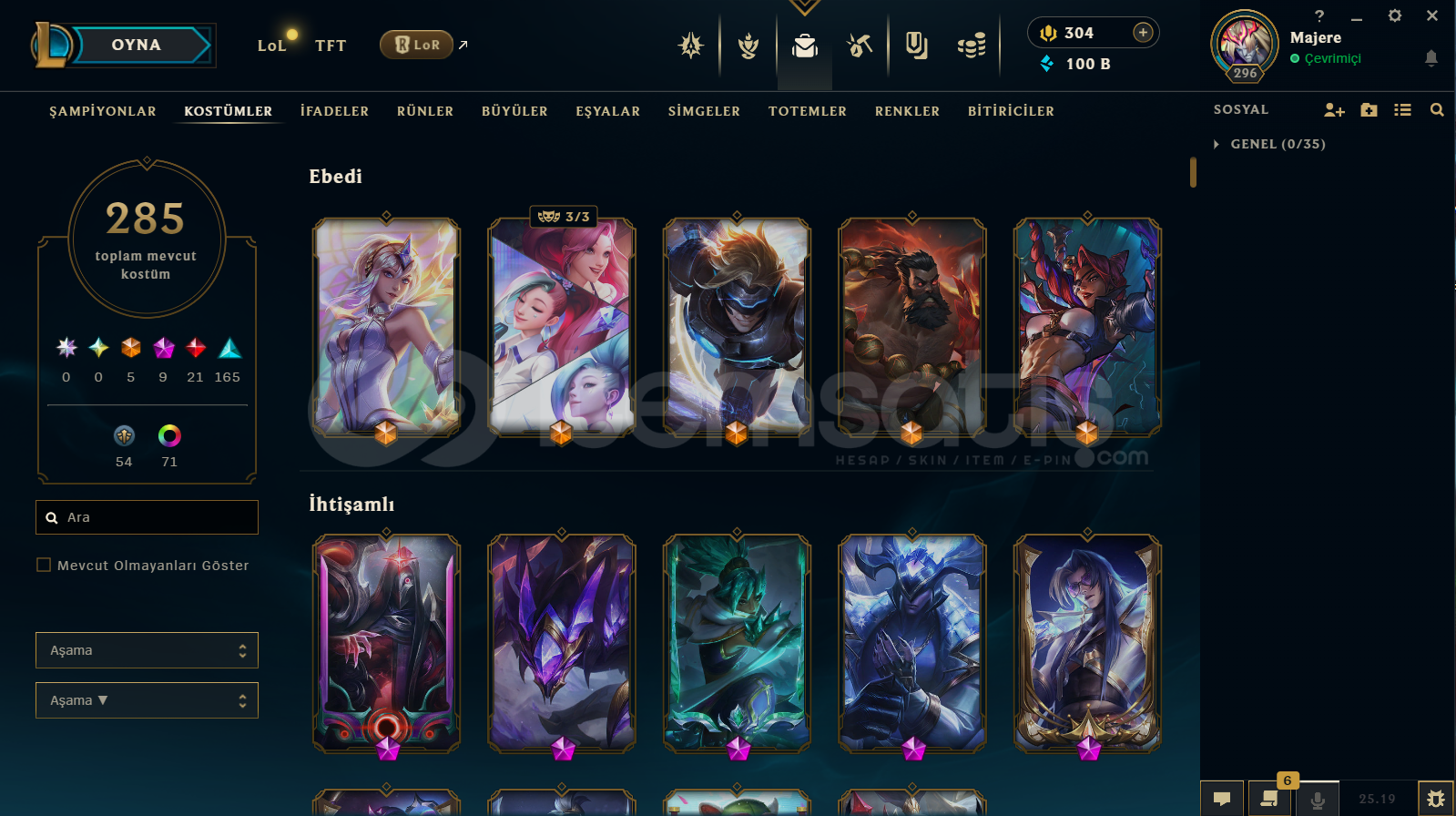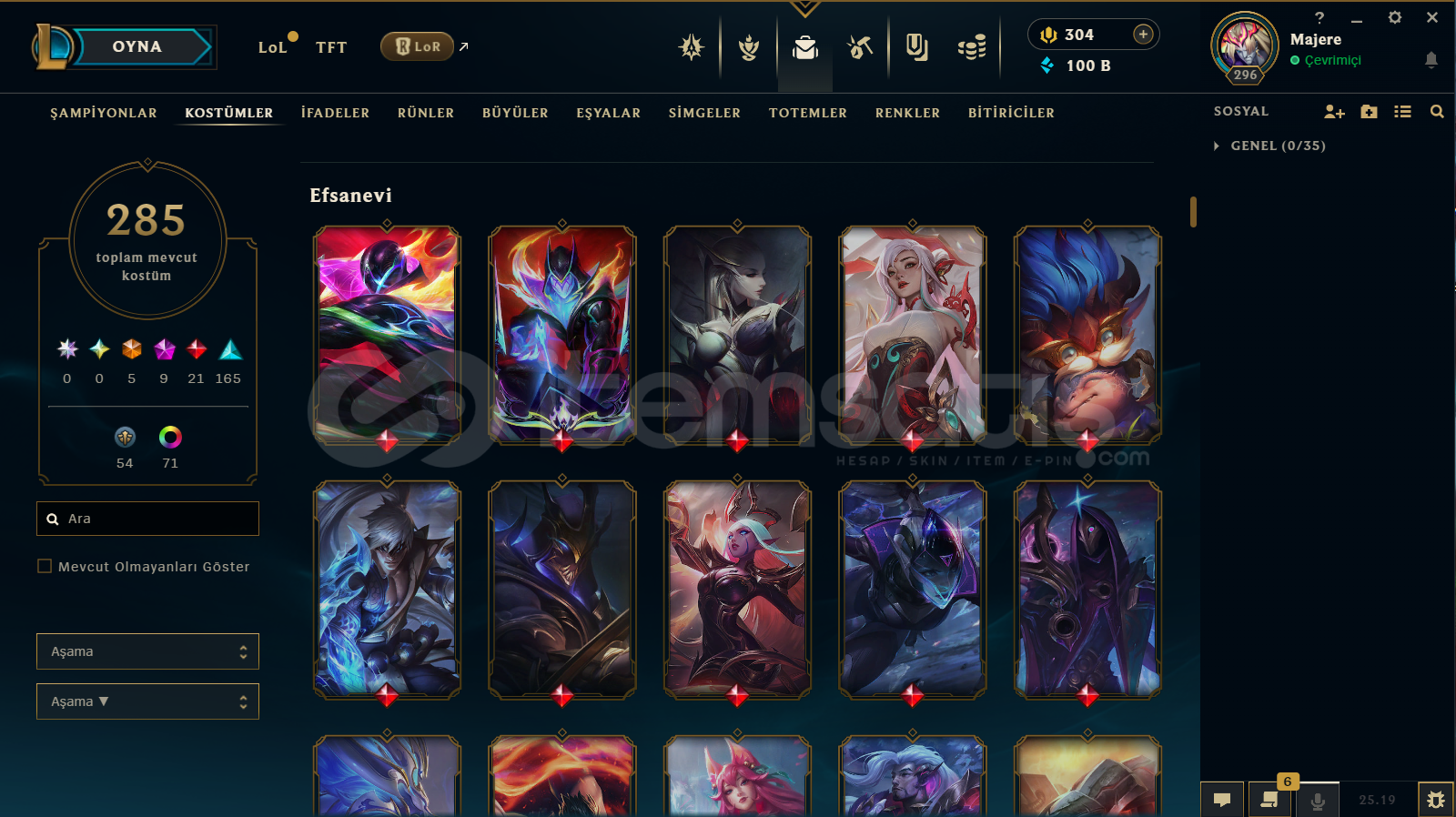 LVL 294 TAKDİR 4 5 OLACAK ETKİNLİK KARTI ALINDI TFT KARTI ALINDI 2450 TURUNCU ÖZ 100K MAVİ ÖZ 92 İHTİŞAMLI ÖZKostüm sayısı 285EBEDİ 5İHTİŞAMLI 9EFSANEVİ 21DESTANSI 165HATIRA 54RENK PAKETİ 71TFT 150 DEN FAZLA STRATEJİ USTASI DİZGİNSİZ GECENİN KILICI YASUO (FULL PAKET ÇATAPAT VE GEÇİTLERİ DAHİL)CHİBİ DRX AATROXCHİBİ YÜCE KILI&...