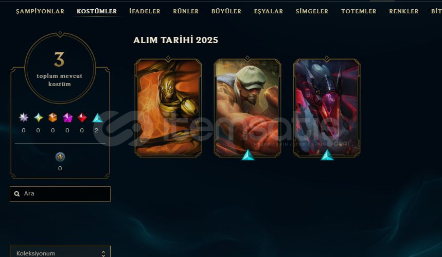 3 kostüm gold 2 Jungle mainlik hesap MAİL ONAYSZ