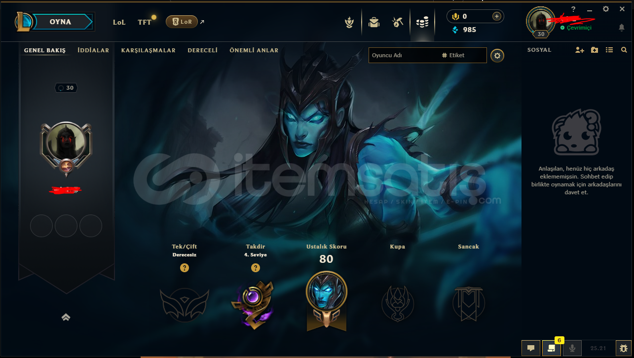30 LEVEL TR SUNUCUSU LOL HESABIM SATILIKTIR.TAKDİR 4 SEVİYEDİR. HERHANGİ BİR CEZASI BULUNMAMAKTADIR.64 KARAKTER AÇIKTIR. DAHA ÖNCE DERECELİ ATILMAMIŞTIR.ALICISINA HAYIRLI OLSUN. GÜVENLİK AÇISINDAN İSMİNİ KARALADIM.
