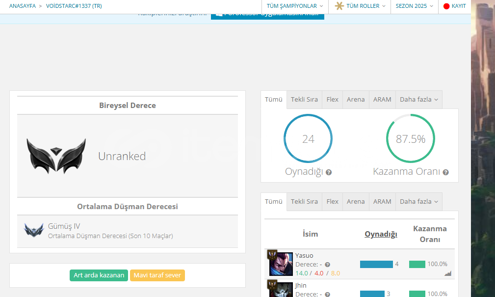 Ranked için zorunlu 10 tam gaz maçı yapılmıştır. Aram ve modlar ile kastığım hesap.Herhangi ban,küfür olmamış ve yüksek winrate li temiz hesaptır.