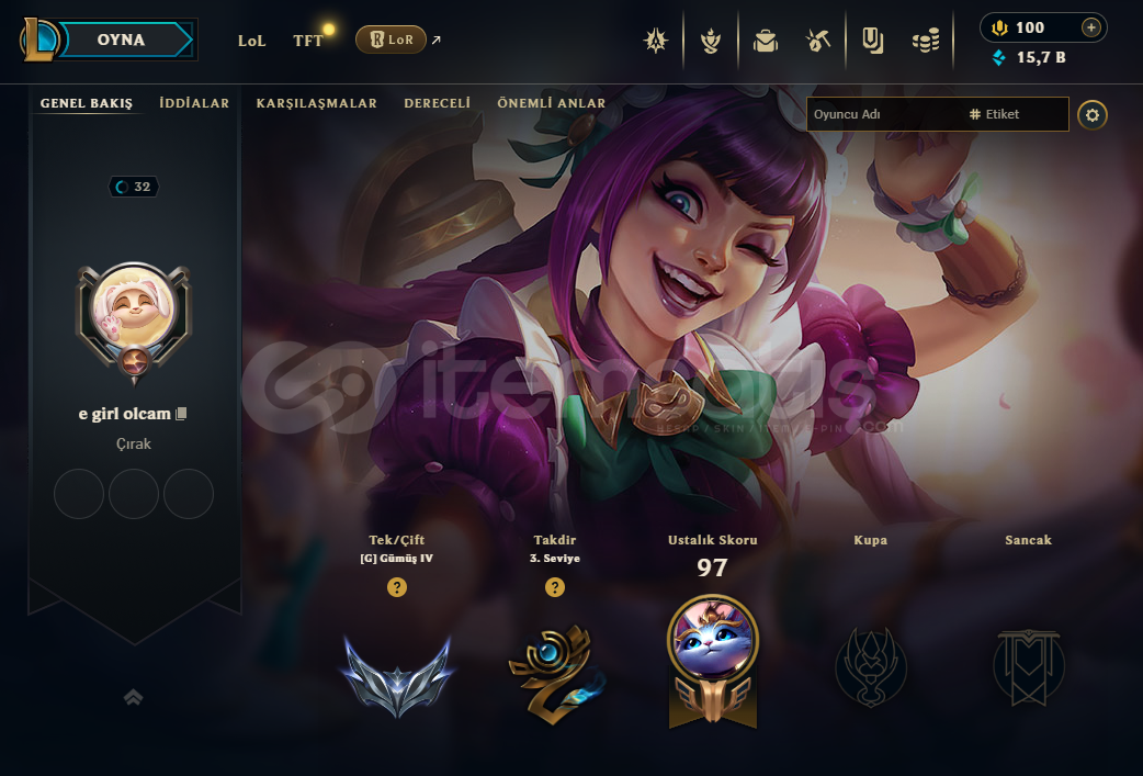 Sadece 4 maç atılmıştır. (Soloq 2 lose 2 win)2 Tane kostüm var ( Tatlı Pastane Jinx ve Kara Gül Balosu Elise)