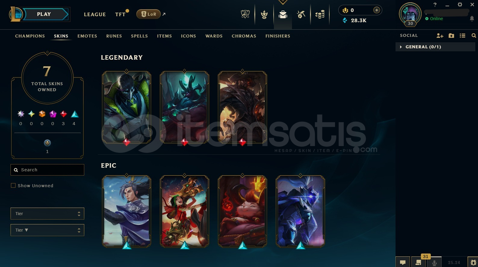 HESAP MAIL DEVRİ İLE TESLİM EDİLECEKTİR. (MAIL VERİLMEYECEK, MAIL KENDİ MAILINIZ İLE DEĞİŞTİRİLDİKTEN SONRA TÜM BİLGİLERİ DEĞİŞTİREBİLİRSİNİZ.)30 SeviyeSolo/Duo--> UNRANKED , FLEX--> UNRANKED7 Açık Kostüm (3 Efsanevi, 4 Destansı)26 Açık Şampiyon4. Seviye TAKDİR(HONOR)NOT=> Hesapta 1 dakika sıra bekleme cezası d...