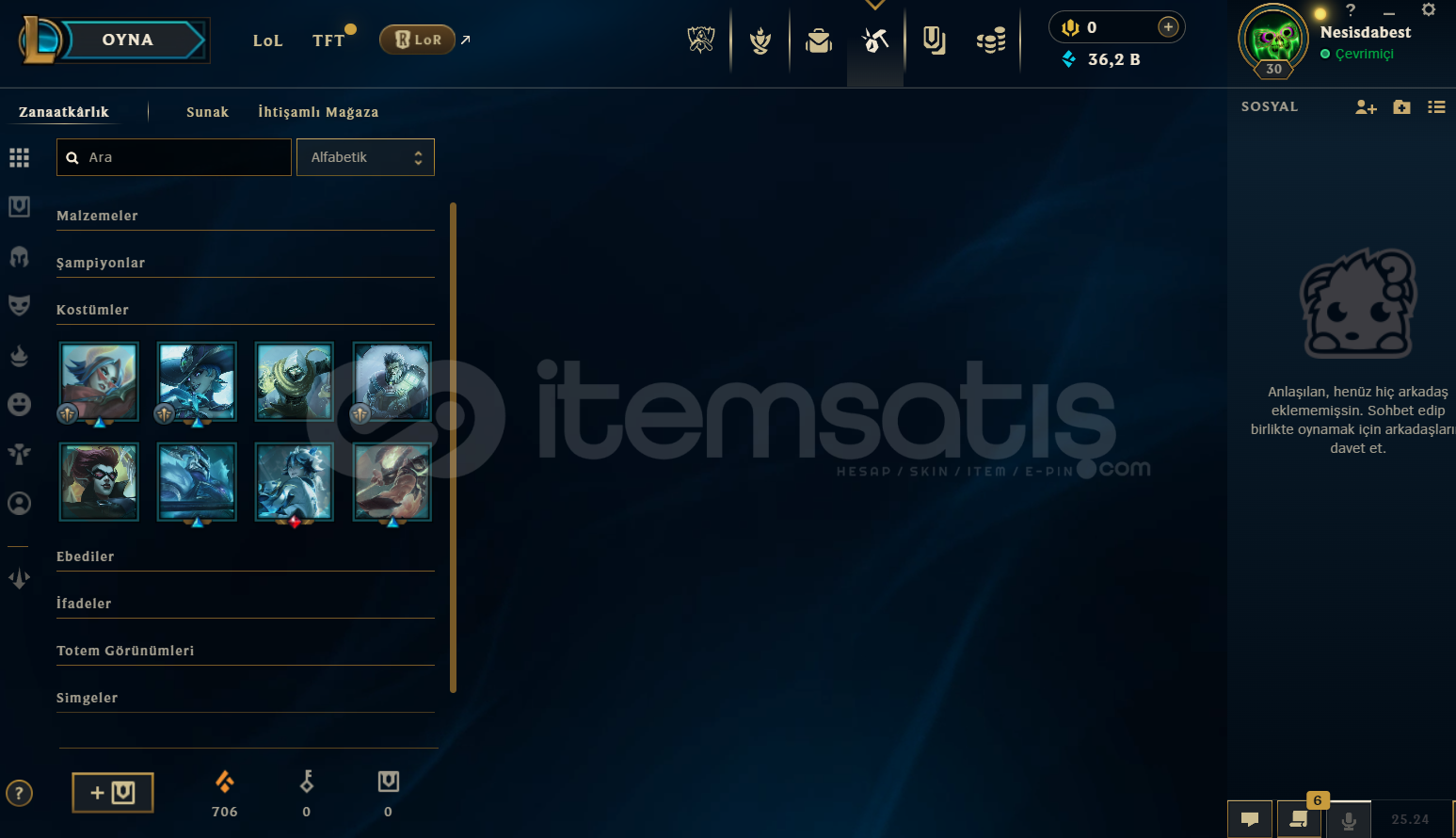 45 şampiyon açık. 36 mavi öz. 706turuncu öz ve 8 skin açılmamış vaziyette.